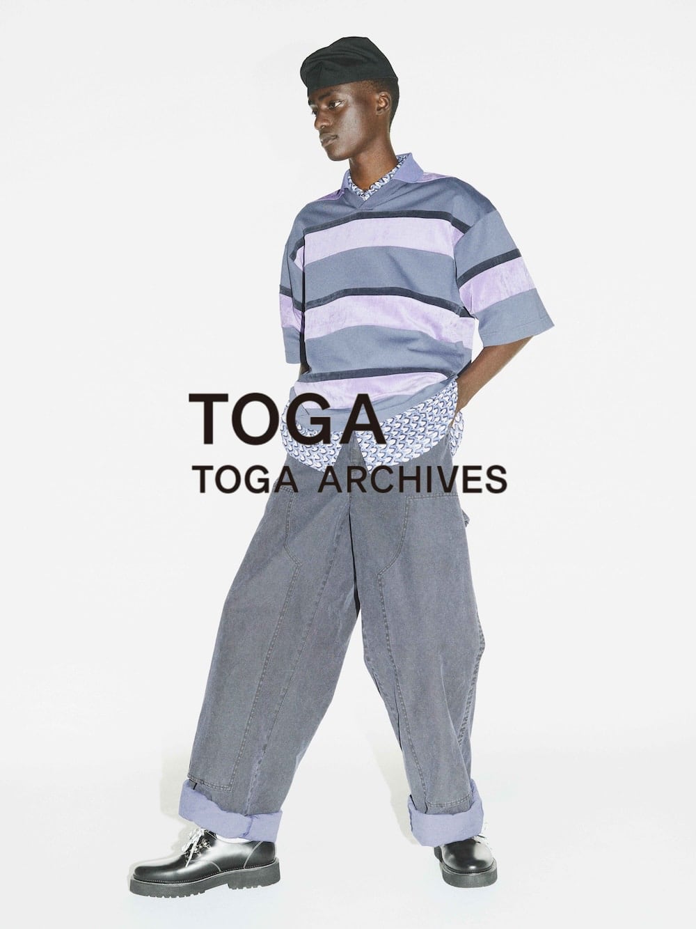 TOGA 2026SS NEW ARRIVAL TOGA×UMBRO GAME SHIRT UMBRO SP NO. TC261-JK510 英国マンチェスター発、フットボールに根ざしたブランドUMBROとの初コラボレーション。 TOGAのカッティングシルエットにUMBROのスポーツユーティリティが加わった定番のゲームシャツ。 スポーティーな雰囲気とモード感がMIXされたTシャツ。 UMBROのゲームシャツならではの機能面と着心地の良さも兼ね備えた一枚。 モードなスタイルにスタイリングしやすく、インナーとしてもトップスとしても重宝します。 レギュラーシルエットのTシャツです。 COLOR Black SIZE S.M.L SIZE S 着丈64cm バスト112cm 肩幅54cm 袖丈19cm M 着丈66cm バスト116cm 肩幅55cm 袖丈20cm L 着丈68cm バスト118cm 肩幅56cm 袖丈23cm ※衣類はすべて平台に平置きし、外寸を測定しております。 商品やデザインによっては若干の誤差が生じますので、予めご了承ください。 ※モデルはサイズMを着用 173cm 68kg MATERIAL 本体: ポリエステル 100% リブ、柄部分: ポリエステル 96% ポリウレタン 4% 無地部分: ポリエステル 98% ポリウレタン 2% 刺繍糸: ポリエステル 100% 原産国: CHINA TOGA(トーガ):デザイナーは古田泰子。1997年にTOGAを設立。2005年にパリでコレクションを発表、2014年に発表の場をロンドンへ移す。数多くのアーティストや作家とのコラボレーションも行っている。
