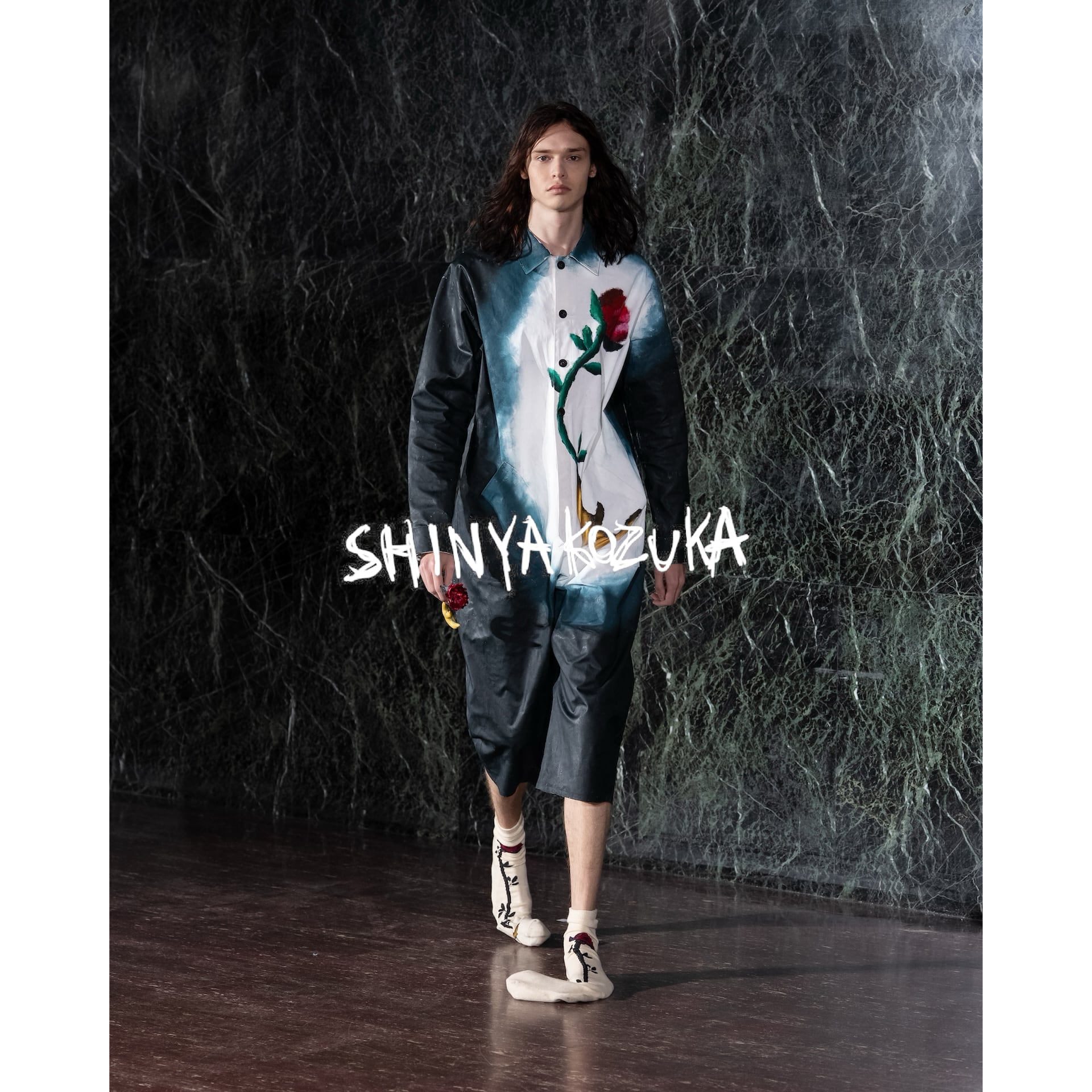 SHINYAKOZUKA 2026SS NEW ARRIVAL BLOOM SOCKS (ISSUE#8) NO.2601SK126 デザイナーが今期のテーマを表すモチーフをハンドドローイングで描き、それを用いたソックス。 ショーツやスカートのアクセントにお使いいただけます。 COLOR BLACK SIZE 23-25cm.25-27cm FABRIC: COTTON YARN 80% COTTON 10% POLYESTER 9% NYLON 1% POLYURETHANE MADE IN JAPAN SHINYAKOZUKA:2013年Central Saint Martins College of Art and Design ファッション学部メンズウェア学科を卒業。日本に帰国後、2015 年より”SHINYAKOZUKA”を開始。 「‘picturesque scenery’ 絵に描いたような情景」をコンセプトに、デザイナーのインスピレーションや考えをドローイングやペインティングで描き、その絵の情景からインスパイアされたコレクションを展開している。