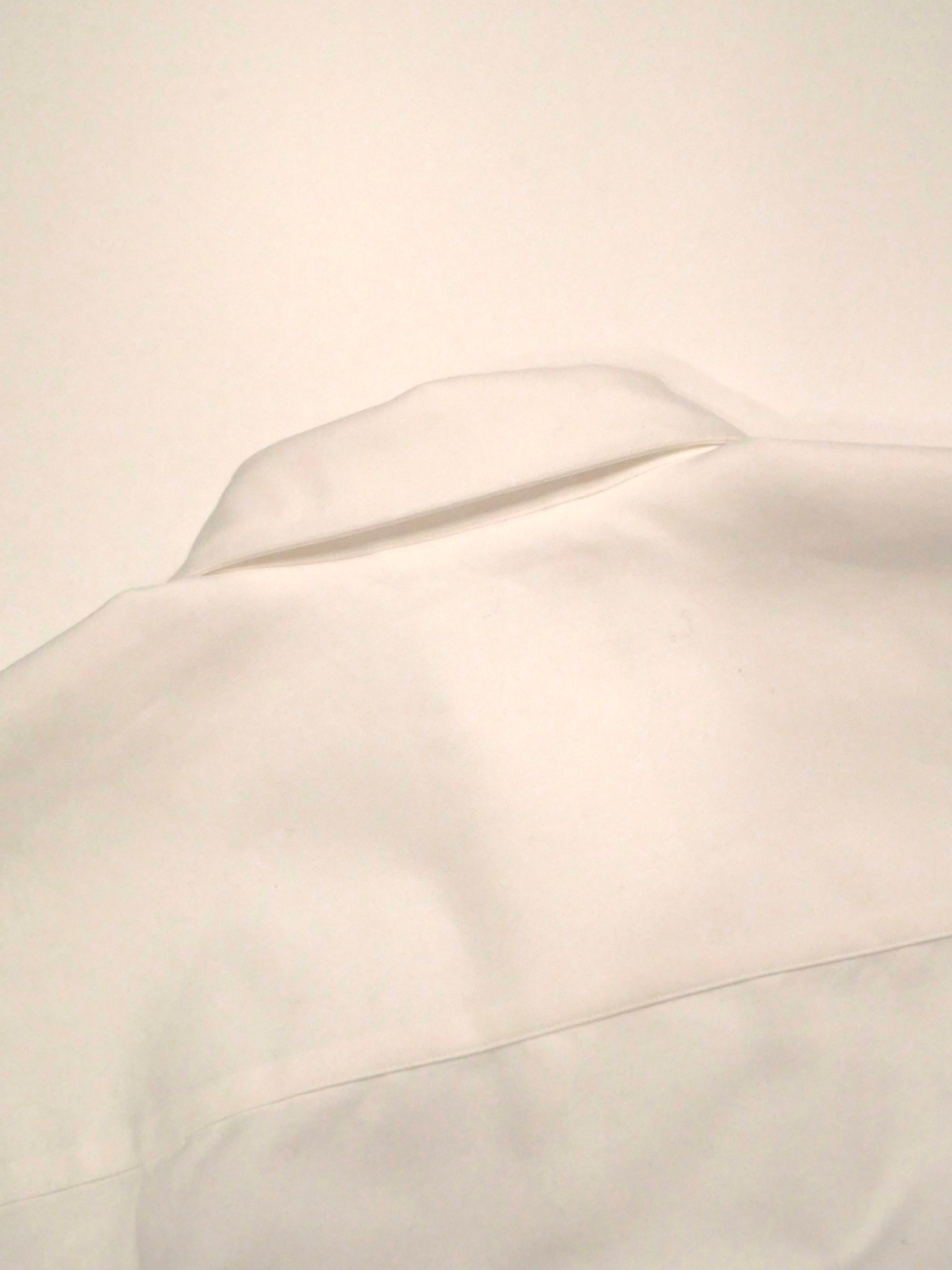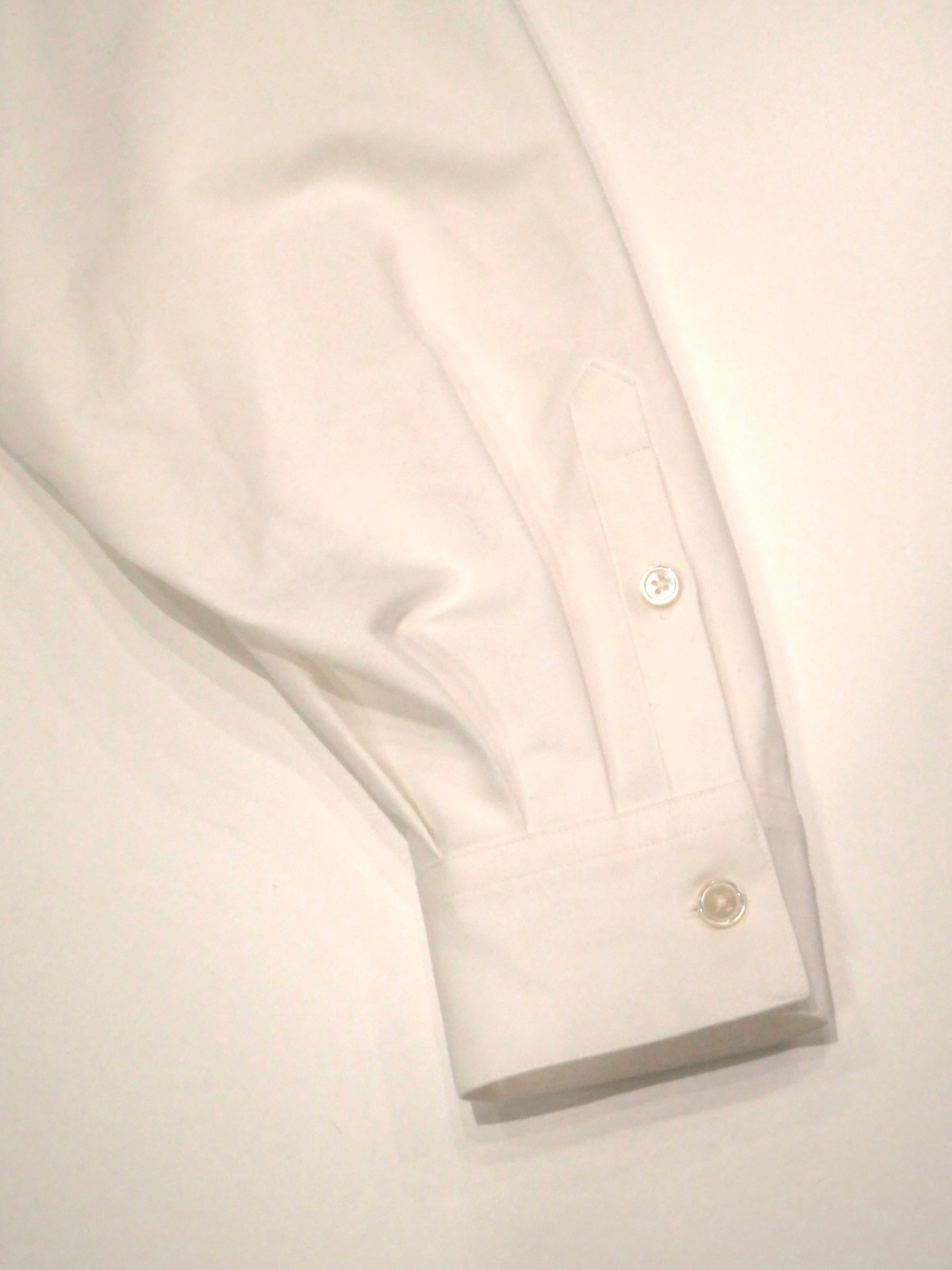 翼竜をモチーフにしたこのシャツは、AHをとても深く設定し、ハリのある綿素材を十分に使うことで表現した翼のようなシルエットが特徴です。さらに、タックインして着用することで、脇と袖が一枚で繋がっているように見え、まさに翼が生えたような感覚を味わっていただけるでしょう。