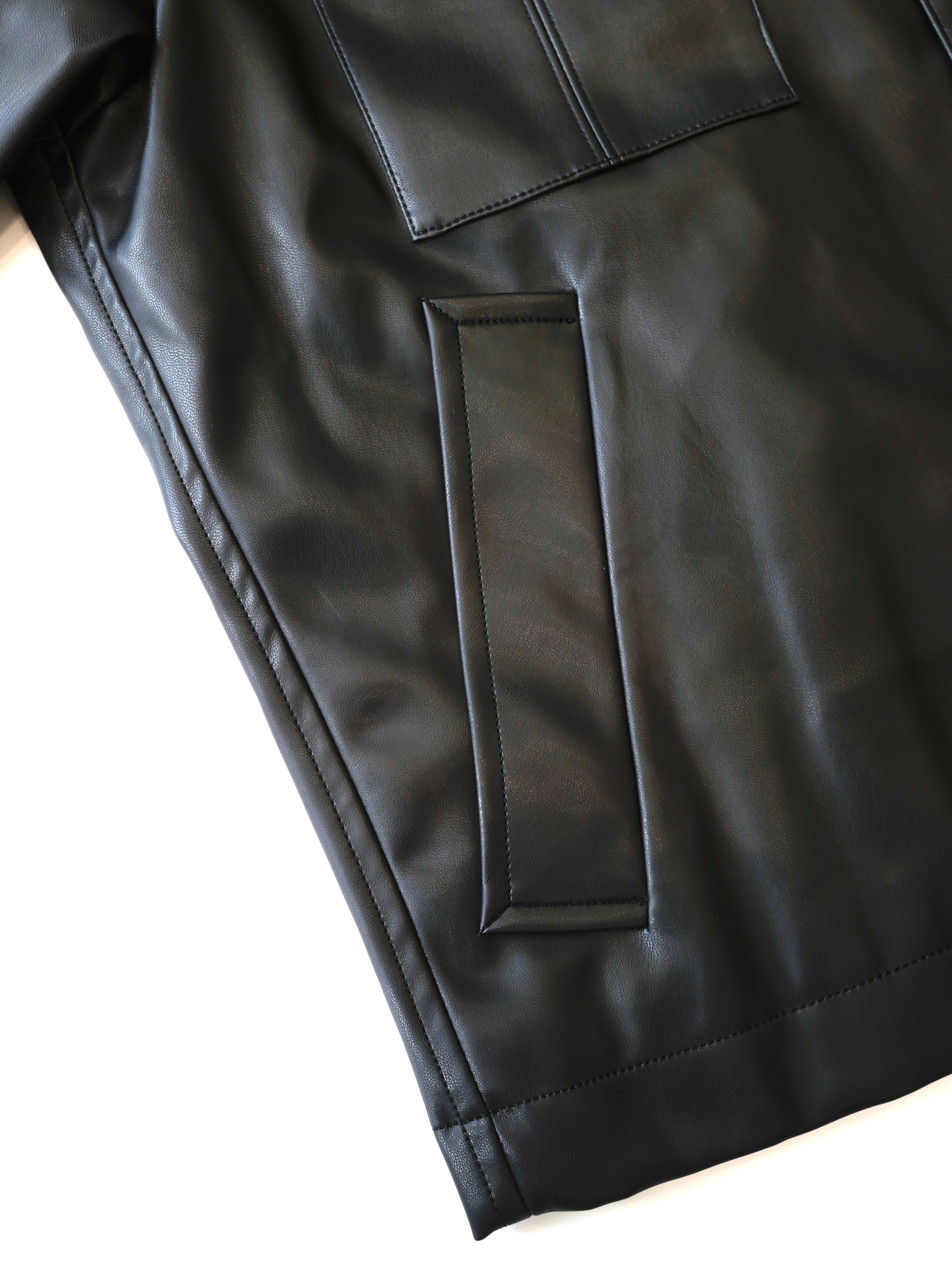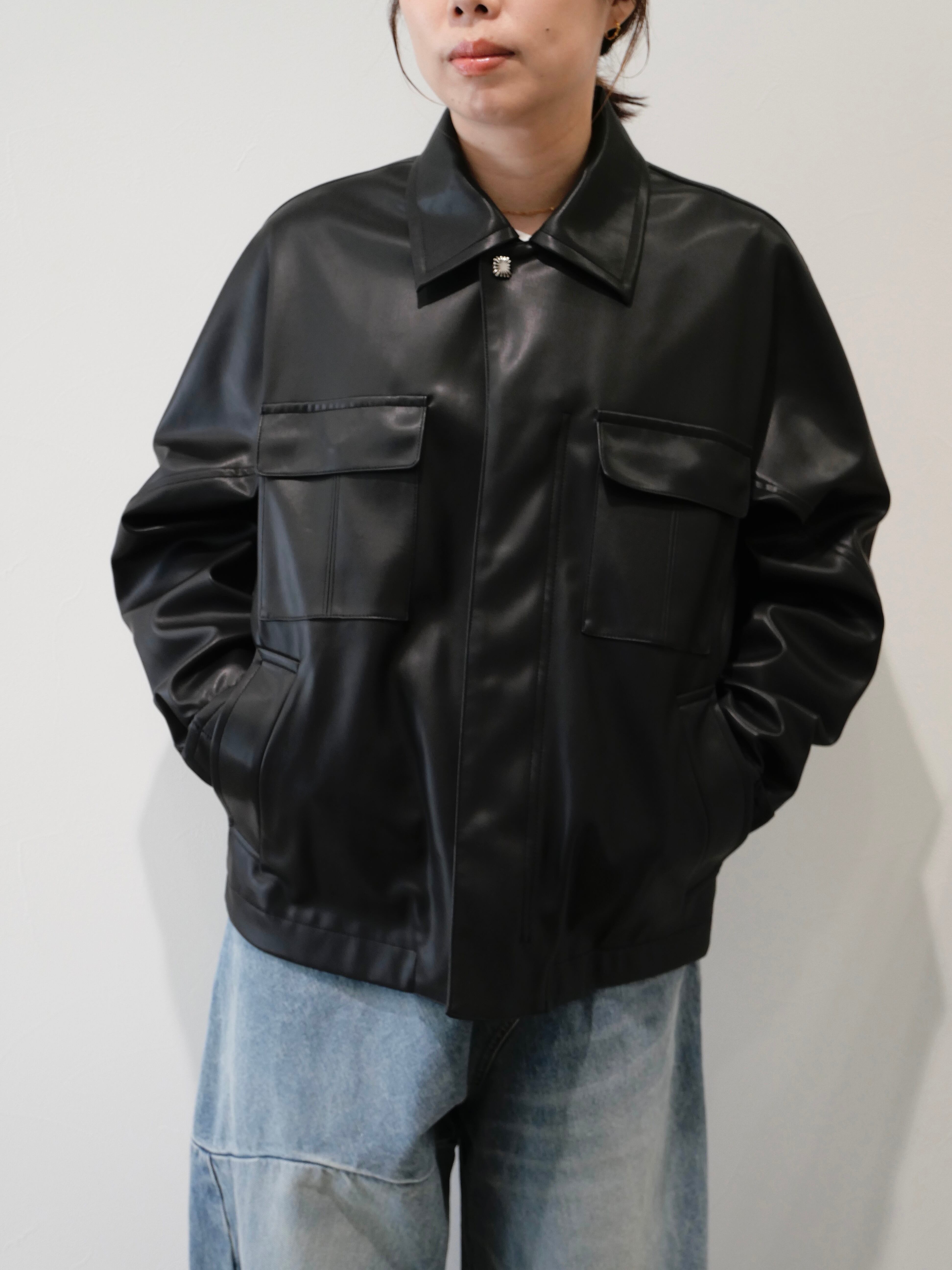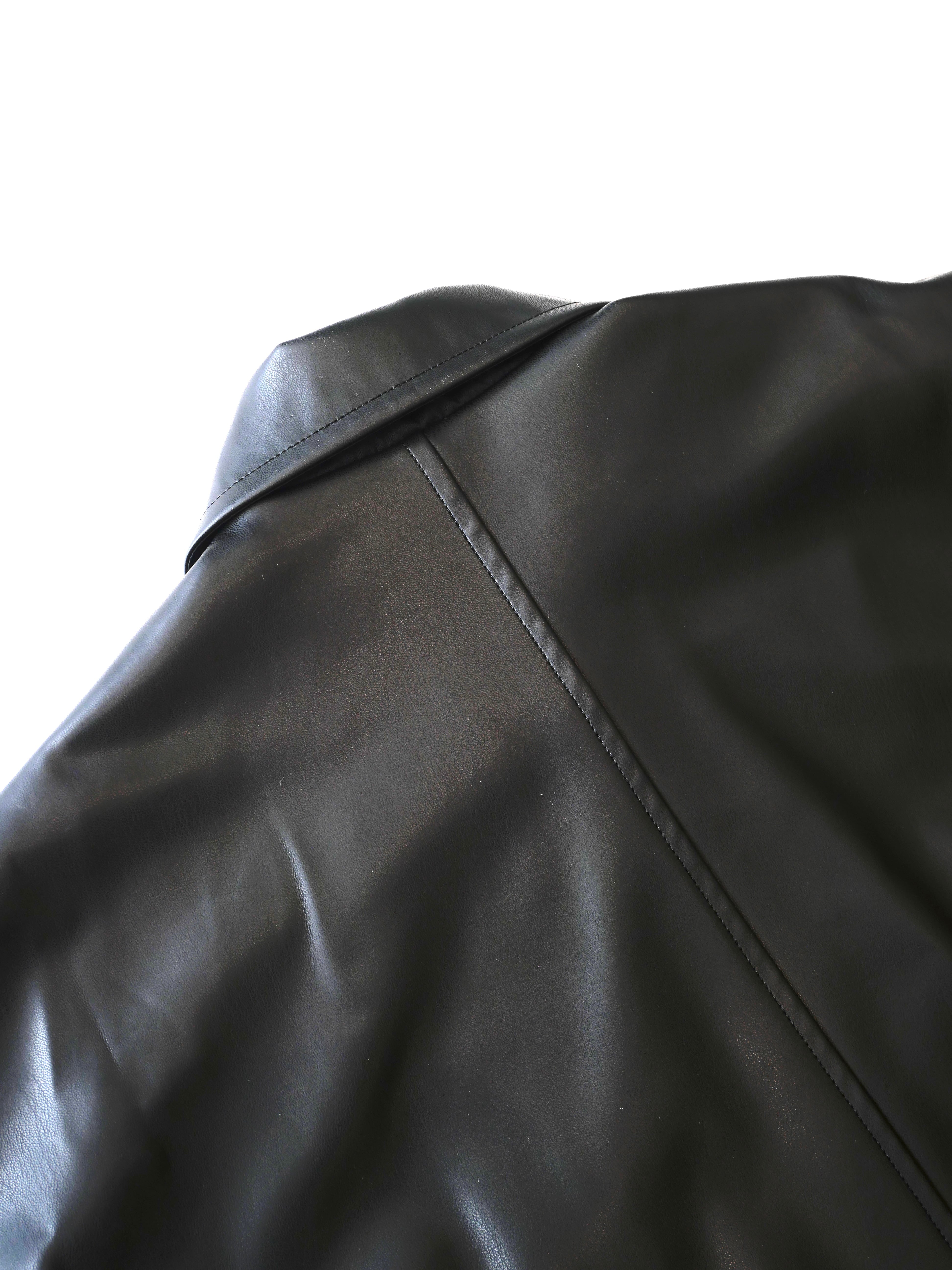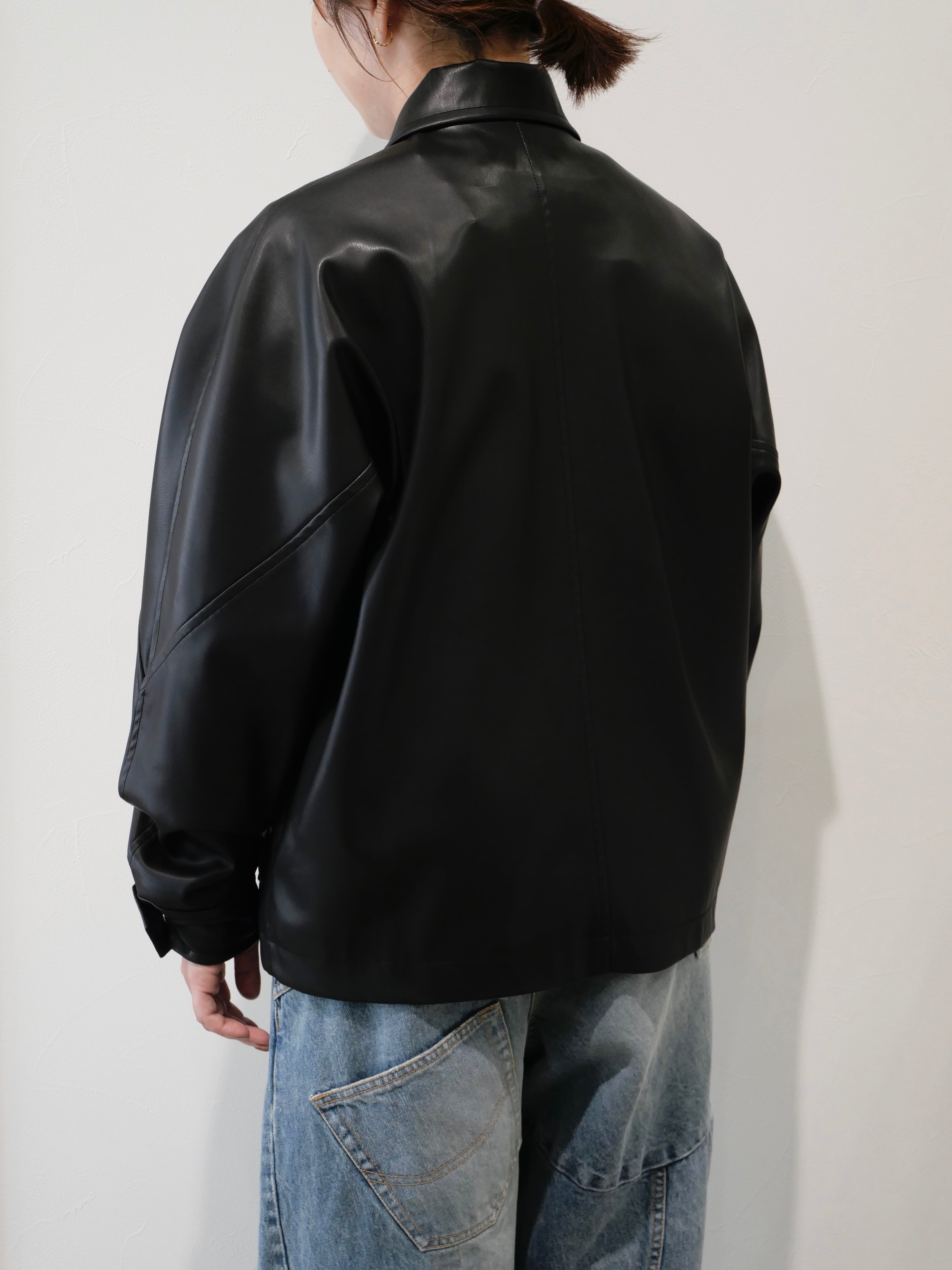 合皮素材で着やすくレザーの上品さも兼ね備えた一着。