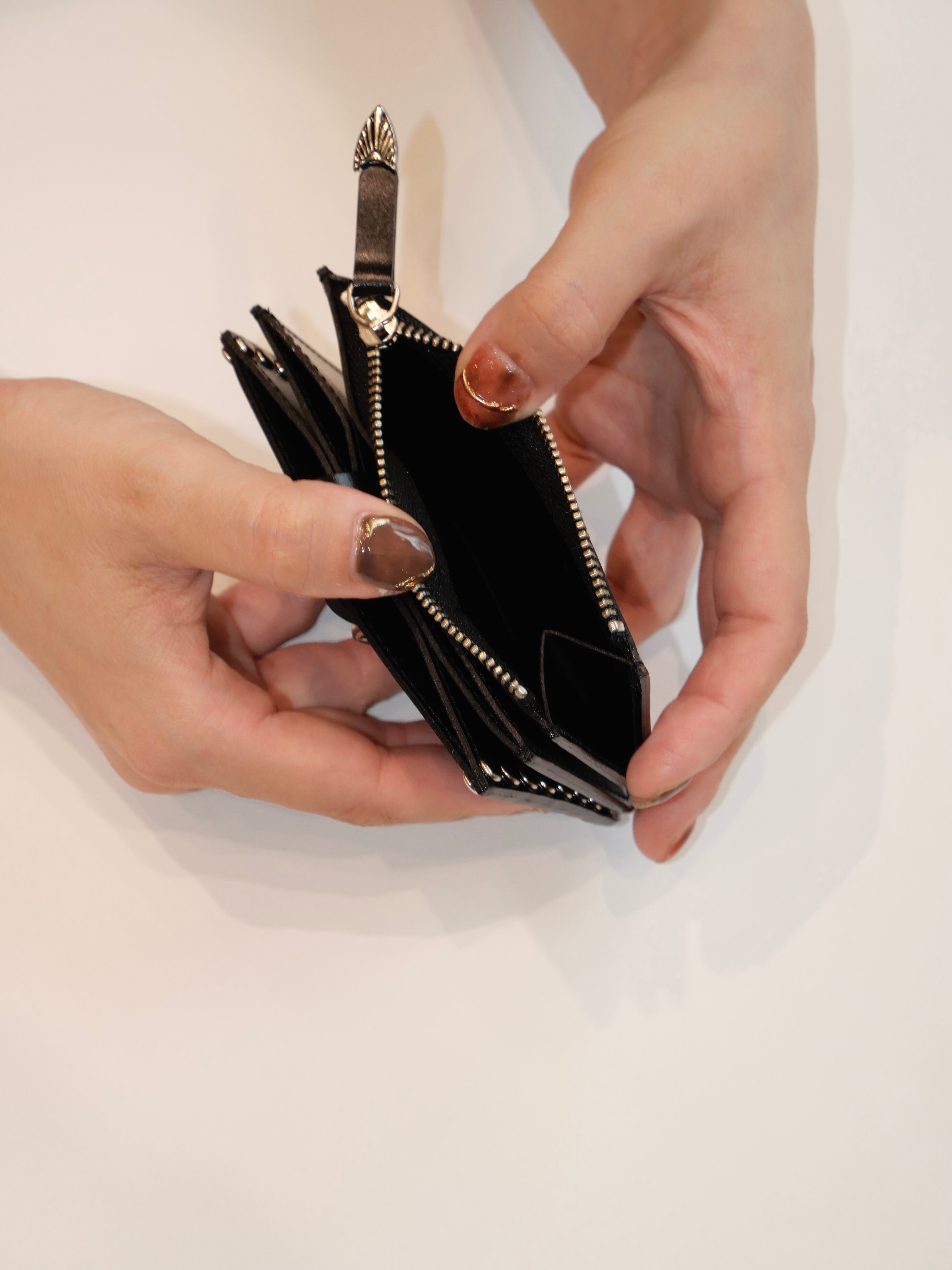 カードスロット、コインポケット、紙幣用ポケット。