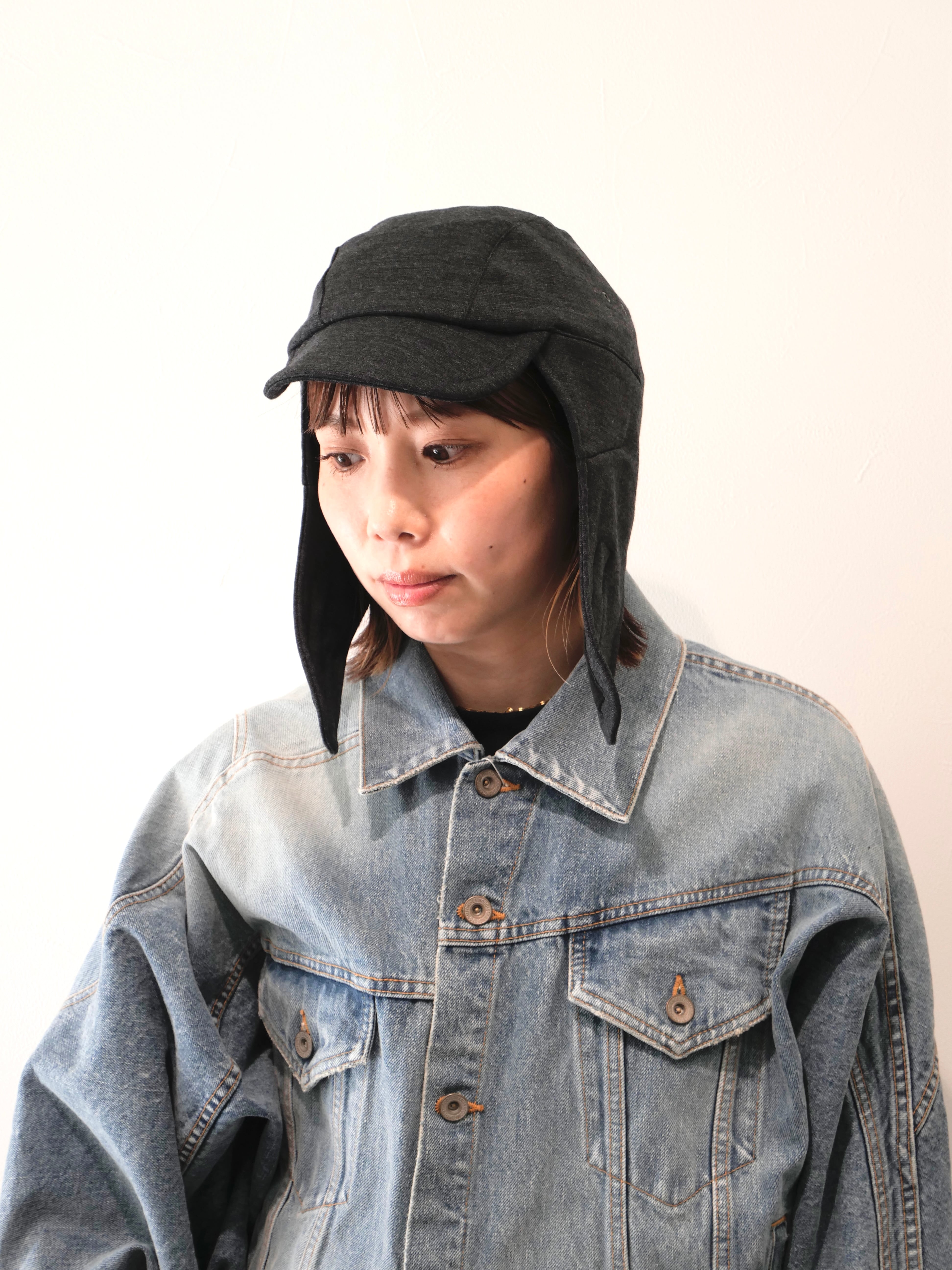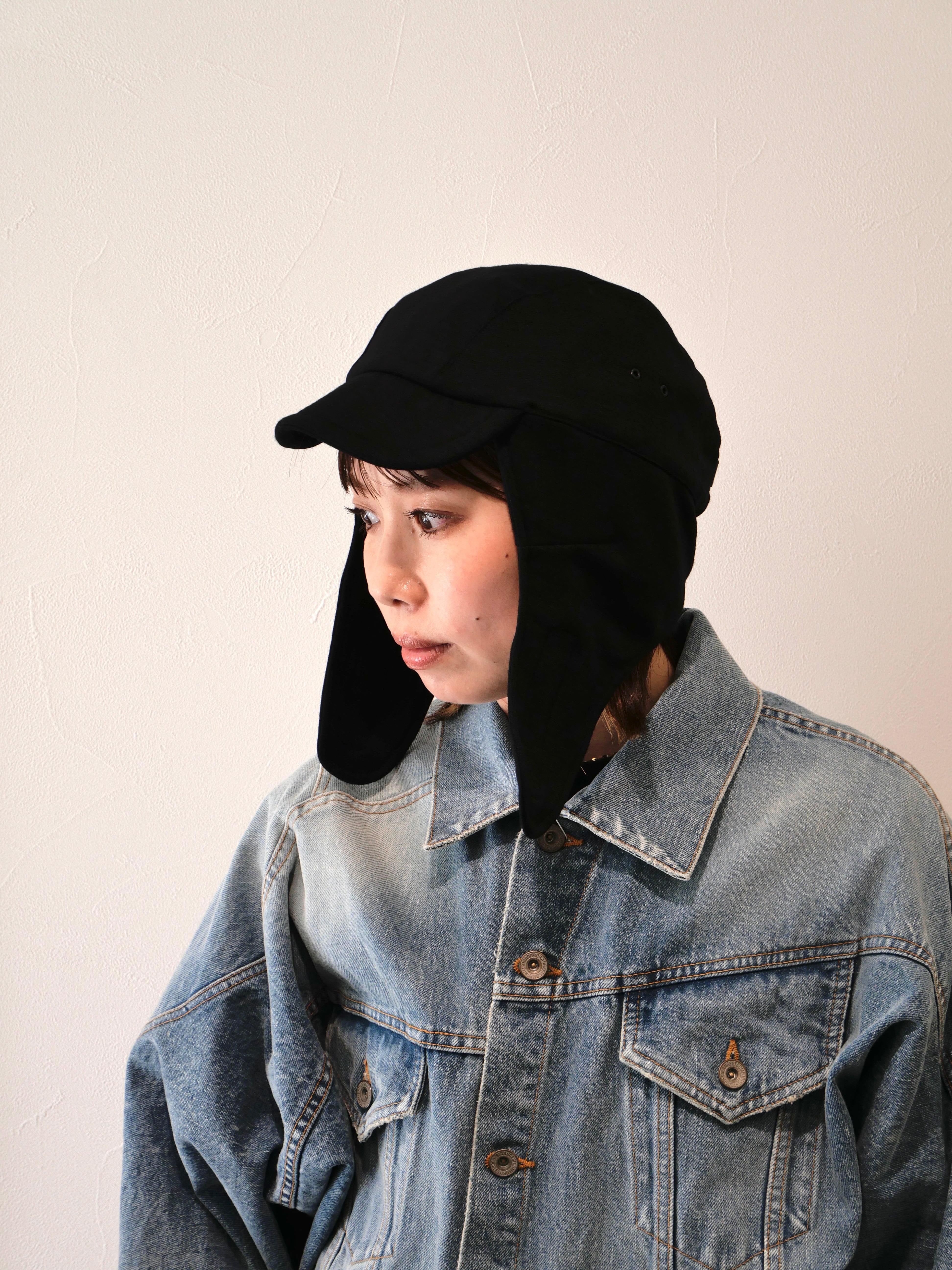ハンドウォッシャブル可能なウール100%ポンチ生地を使用した2枚耳のアーミーキャップ。