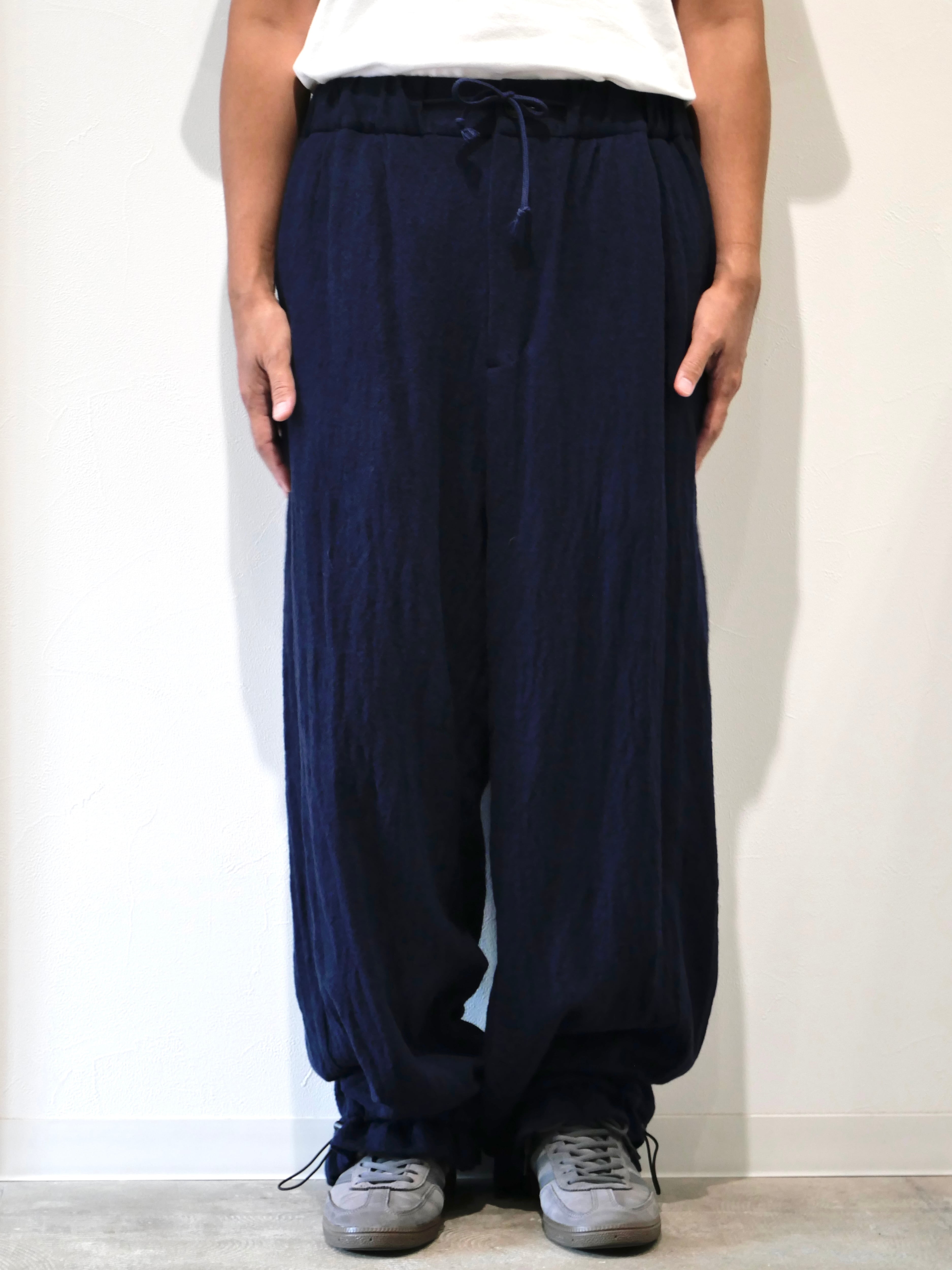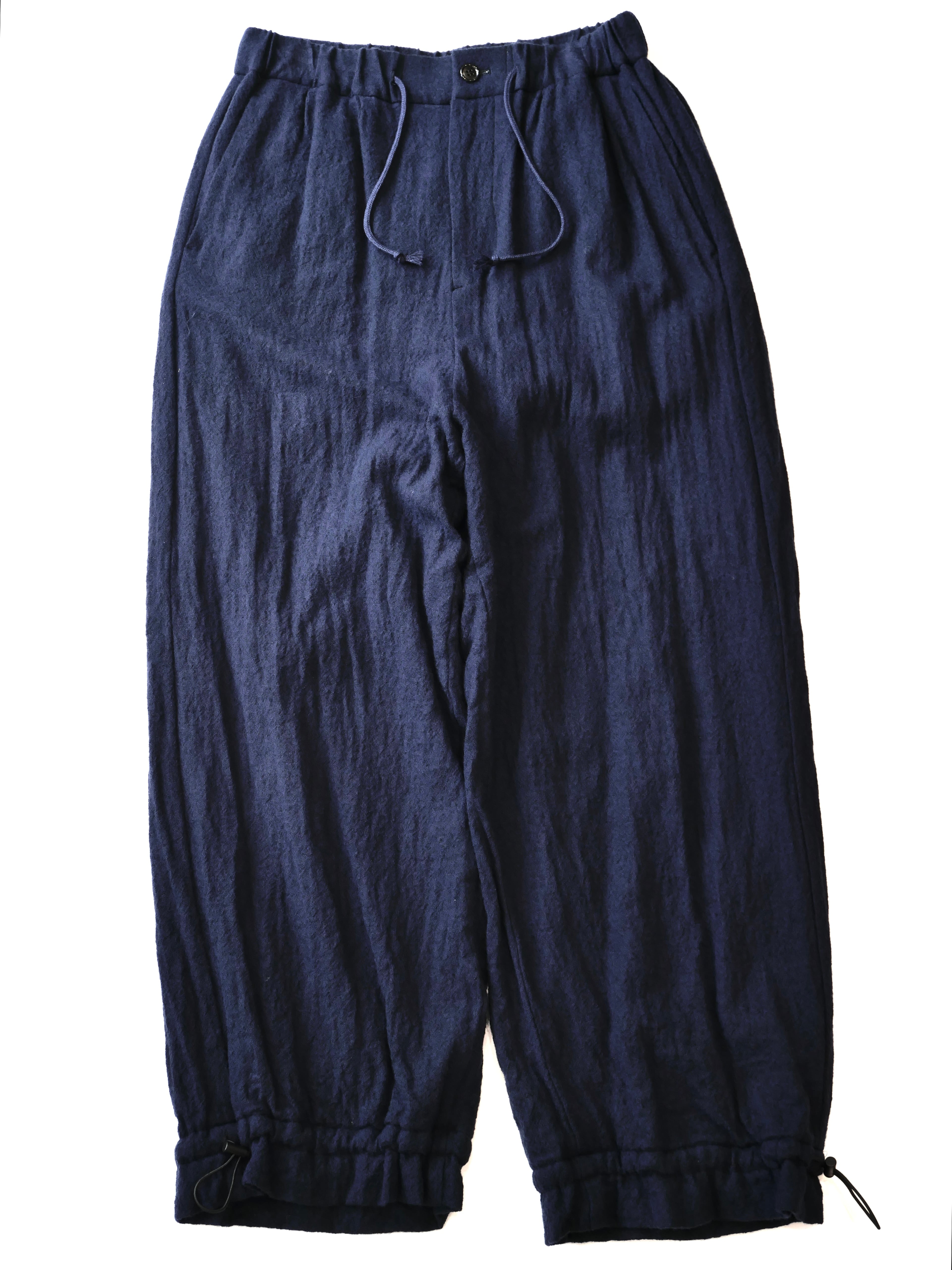 ウエストにはゴム入り、かなり太さがあるシルエットです。