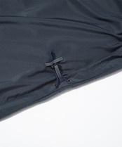 -リサイクルナイロンは、タテ糸にリサイクルナイロン糸、ヨコ糸にオーガニックコットン糸を使用し、高密度に織ることで、マットな仕上がりになっています。また、後加工でダウンプルーフ加工も施されています。