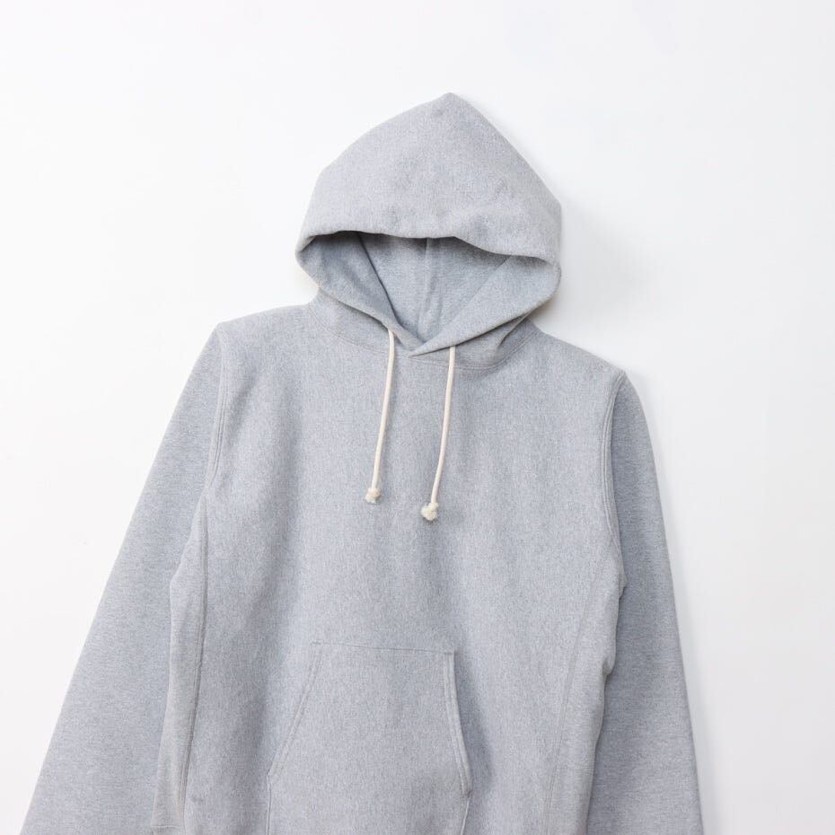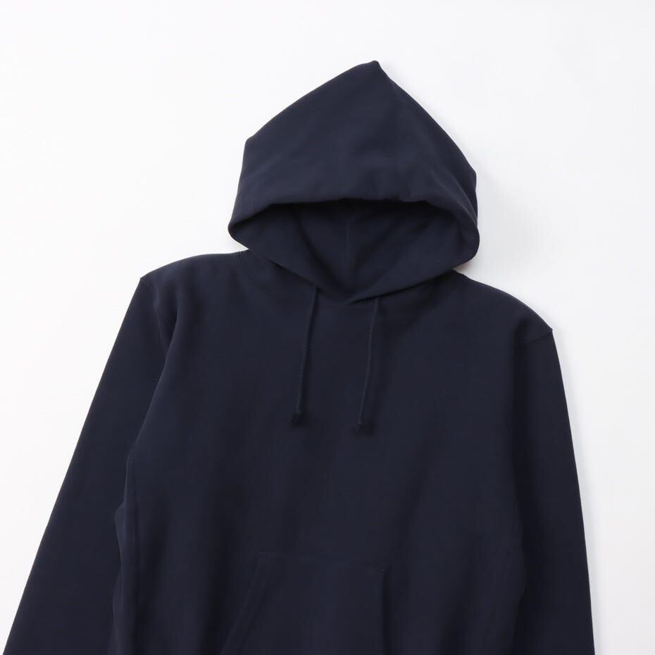 「REVERSE WEAVE® 12.5oz. Terry Fleece(リバースウィーブ® 12.5オンス テリーフリース)」シリーズのフーデッドスウェットシャツです。本来は縦方向に使われる生地を横方向に使用する「REVERSE WEAVE®」製法によって縦の生地の縮みを防ぐと同時に、両脇に「EXPANSION GUSSET(エクスパンションガゼット)」を付けることで横の縮みへの影響を少なくし、動きやすさに配慮しています。