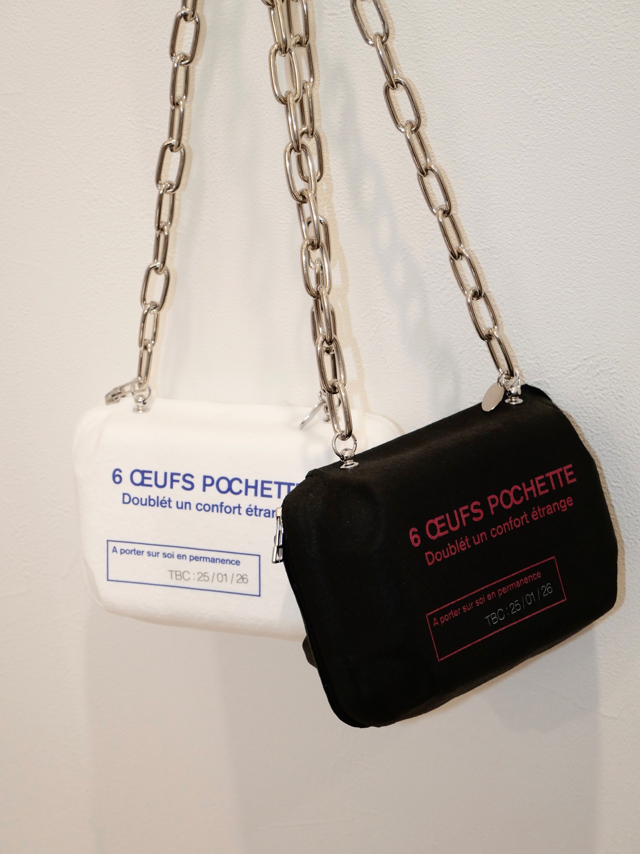 チェーンストラップを使用することで、肩掛けのポーチとして使用できます。まるで本物の卵パックを持ち歩いているかのような仕上がりで、思わずスーパーマーケットに行って自慢したくなるようなこのポーチが、あなたの日常の中に少しの遊び心を感じさせてくれたら嬉しいです。