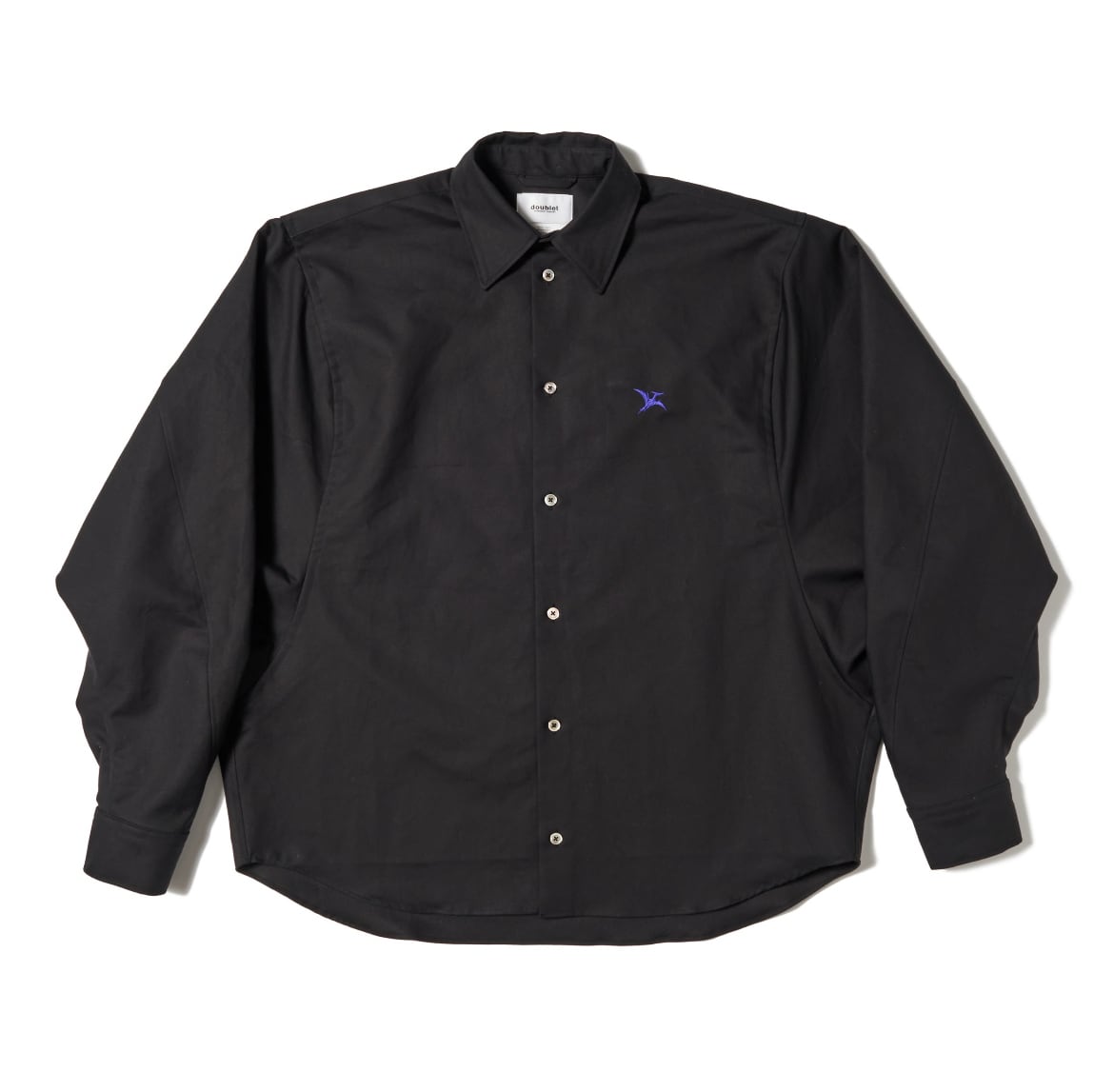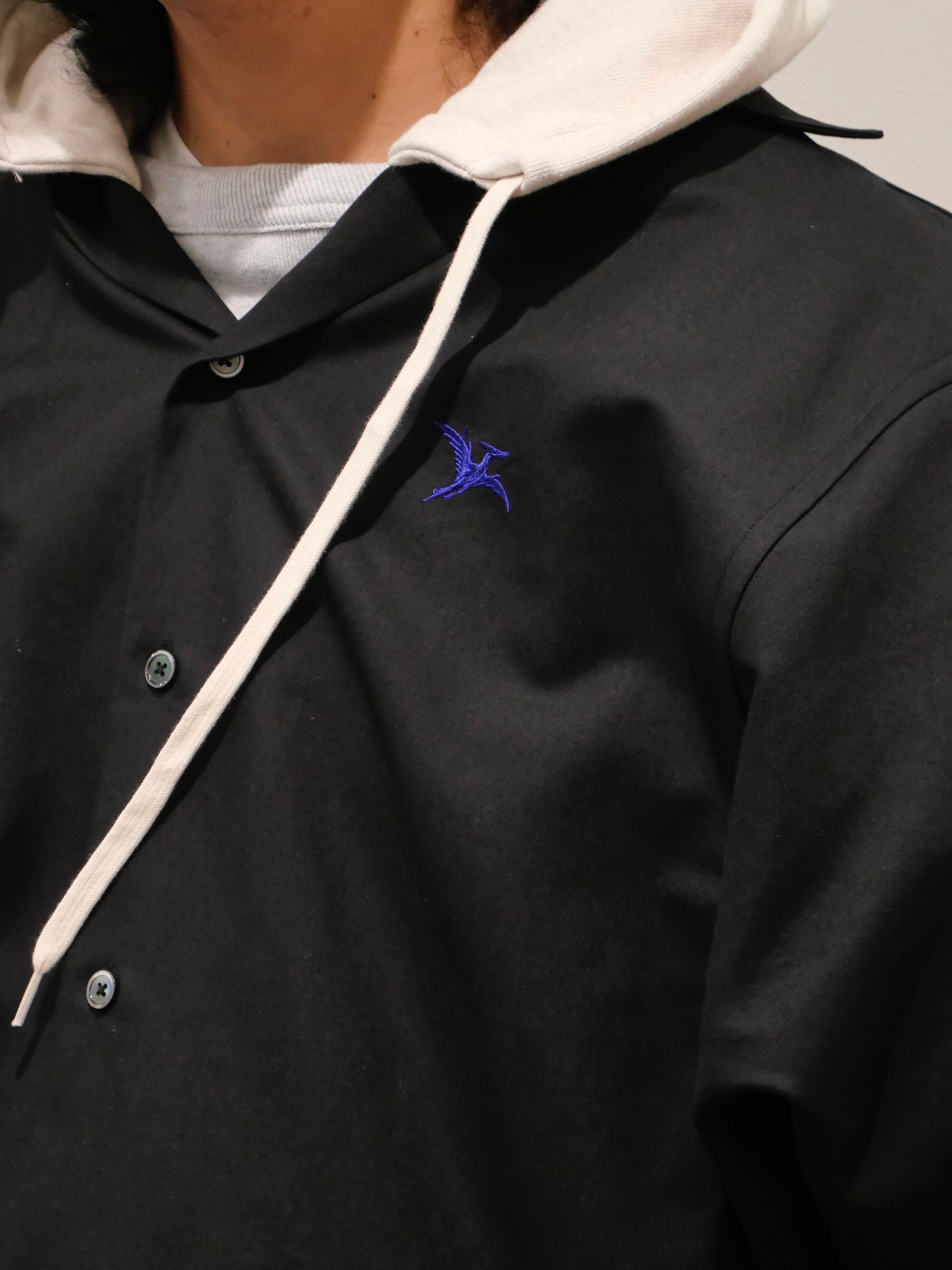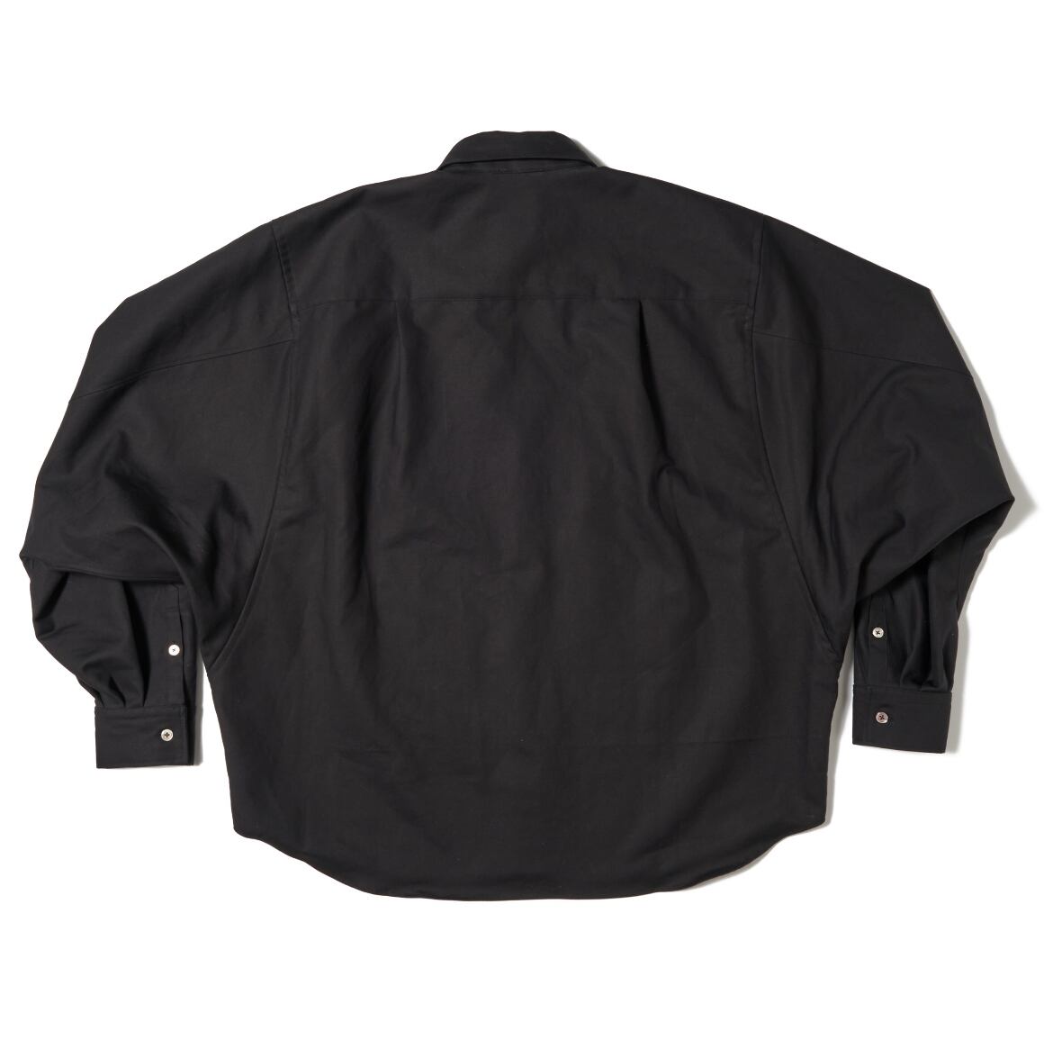 翼竜をモチーフにしたこのシャツは、AHをとても深く設定し、ハリのある綿素材を十分に使うことで表現した翼のようなシルエットが特徴です。さらに、タックインして着用することで、脇と袖が一枚で繋がっているように見え、まさに翼が生えたような感覚を味わっていただけるでしょう。