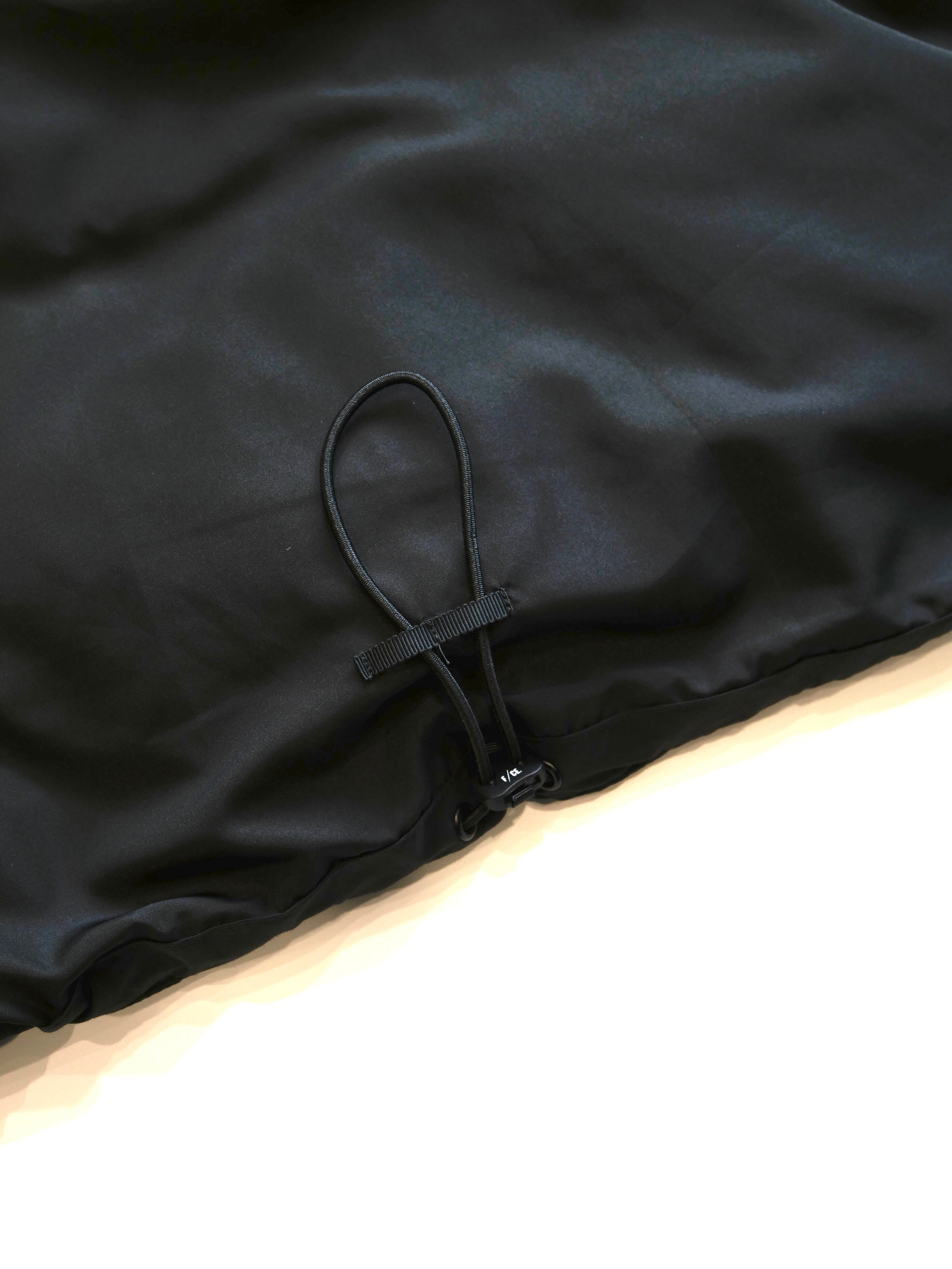 -リサイクルナイロンは、タテ糸にリサイクルナイロン糸、ヨコ糸にオーガニックコットン糸を使用し、高密度に織ることで、マットな仕上がりになっています。また、後加工でダウンプルーフ加工も施されています。