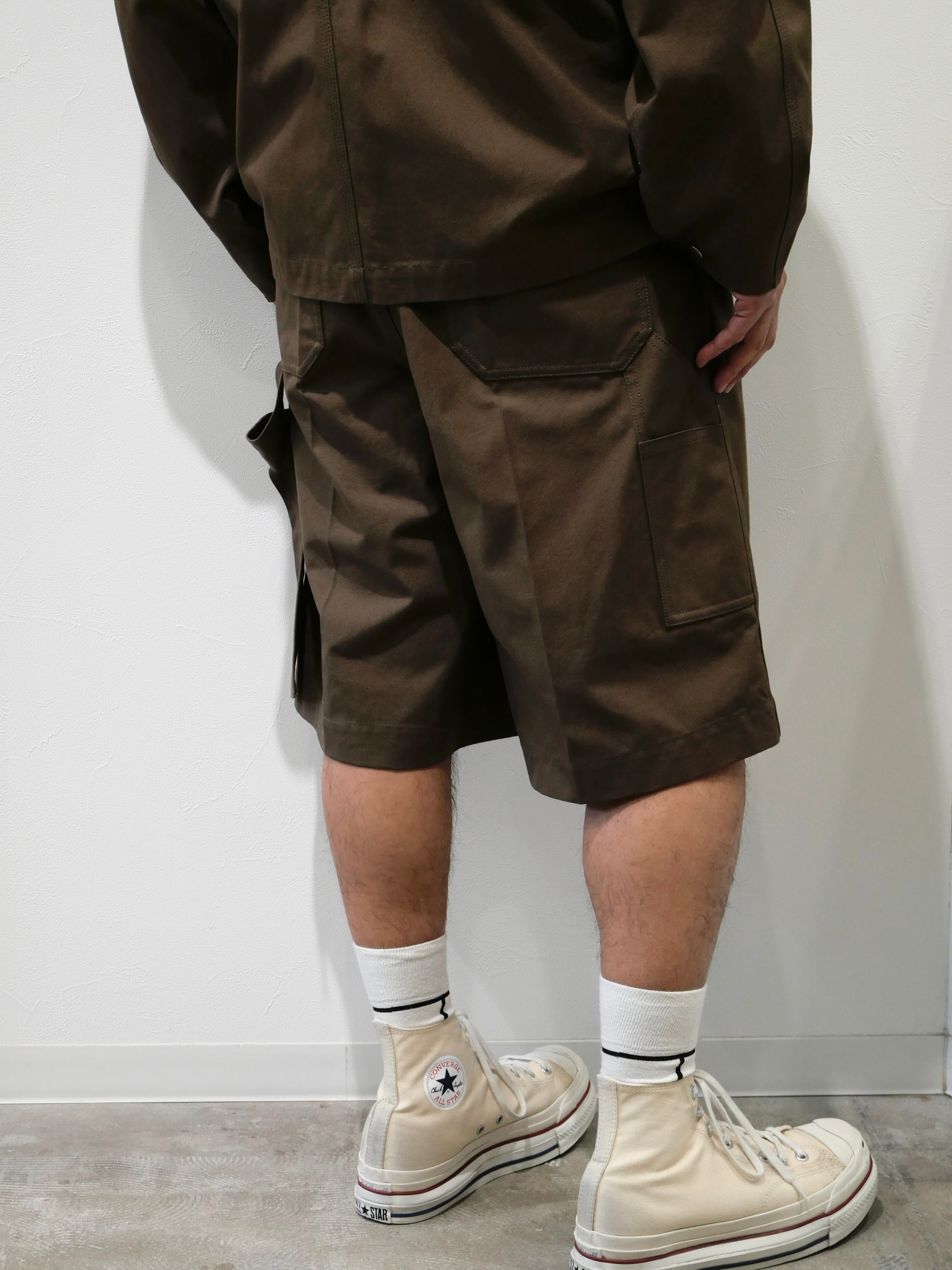 ハリ感のあるコットン生地のペインターパンツ型ショーツ。
