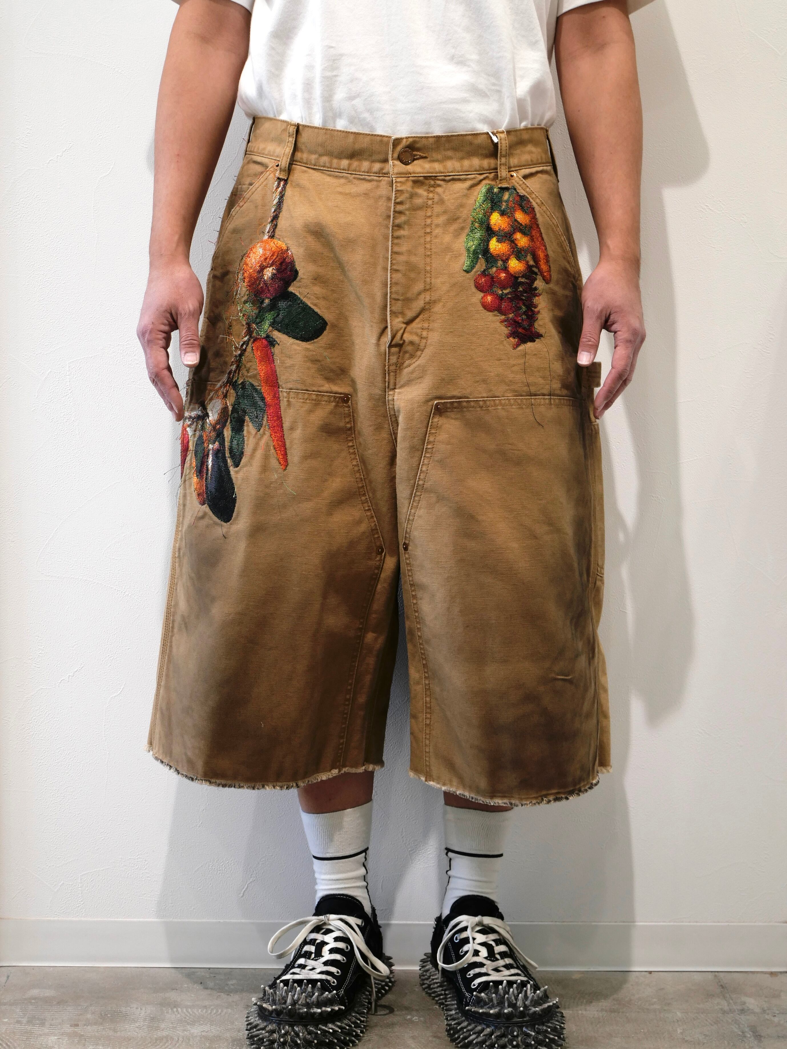 VEGETABLE EMBROIDERY CUT-OFF PANTS
