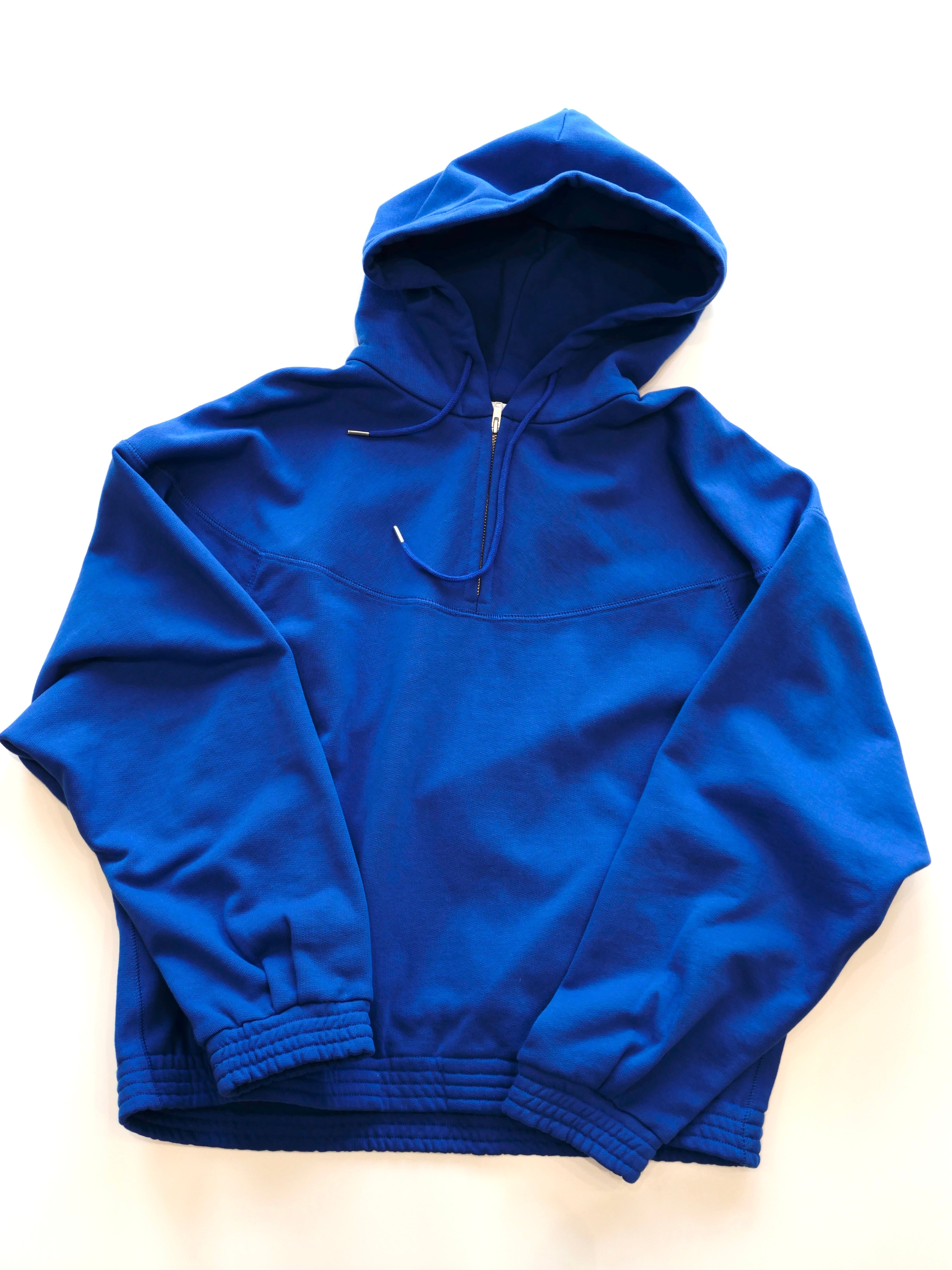 着丈の短めのデザインとなっており、どんなボトムスでもバランスがとりやすいシルエットのスウェットパーカーです。