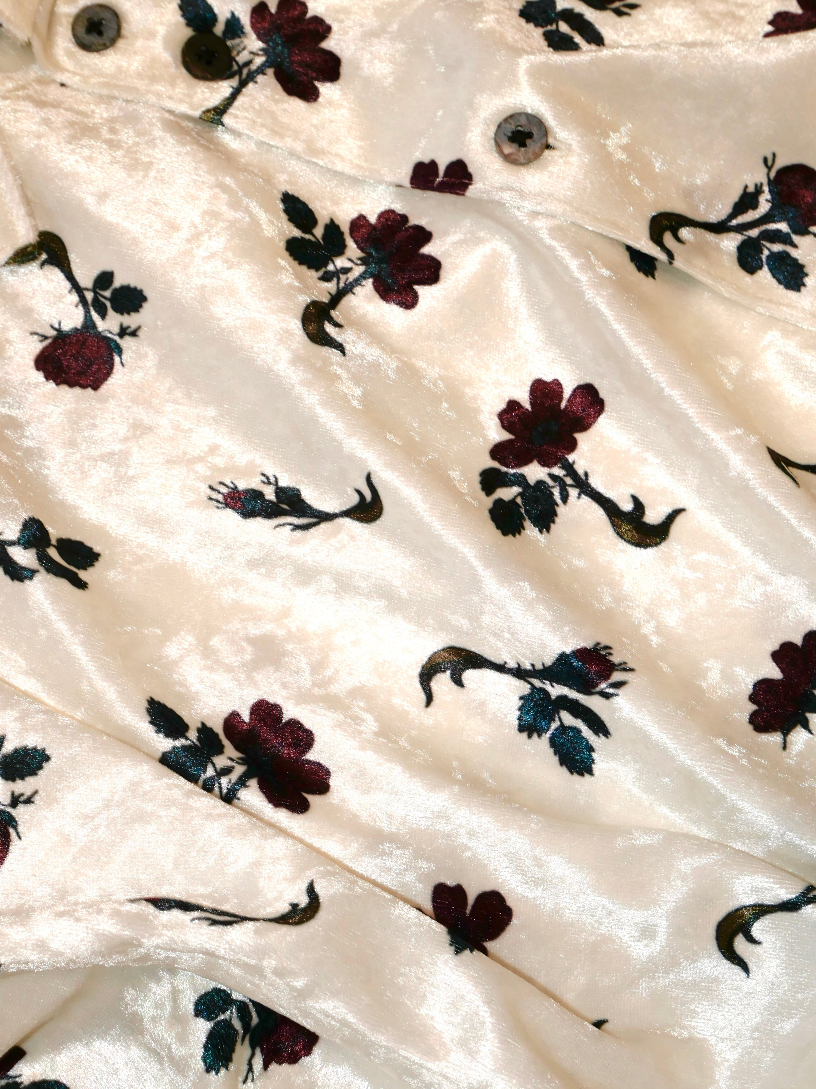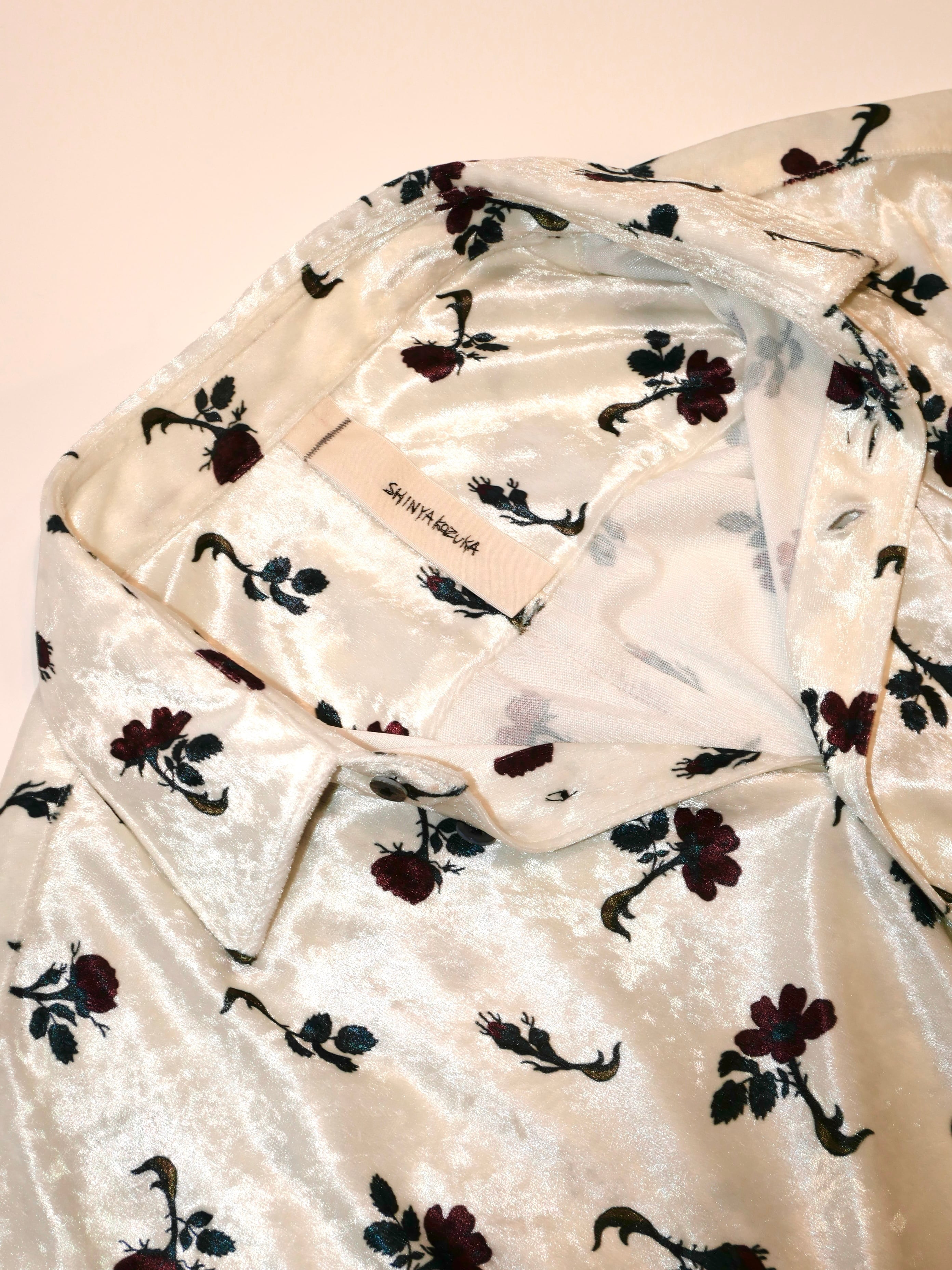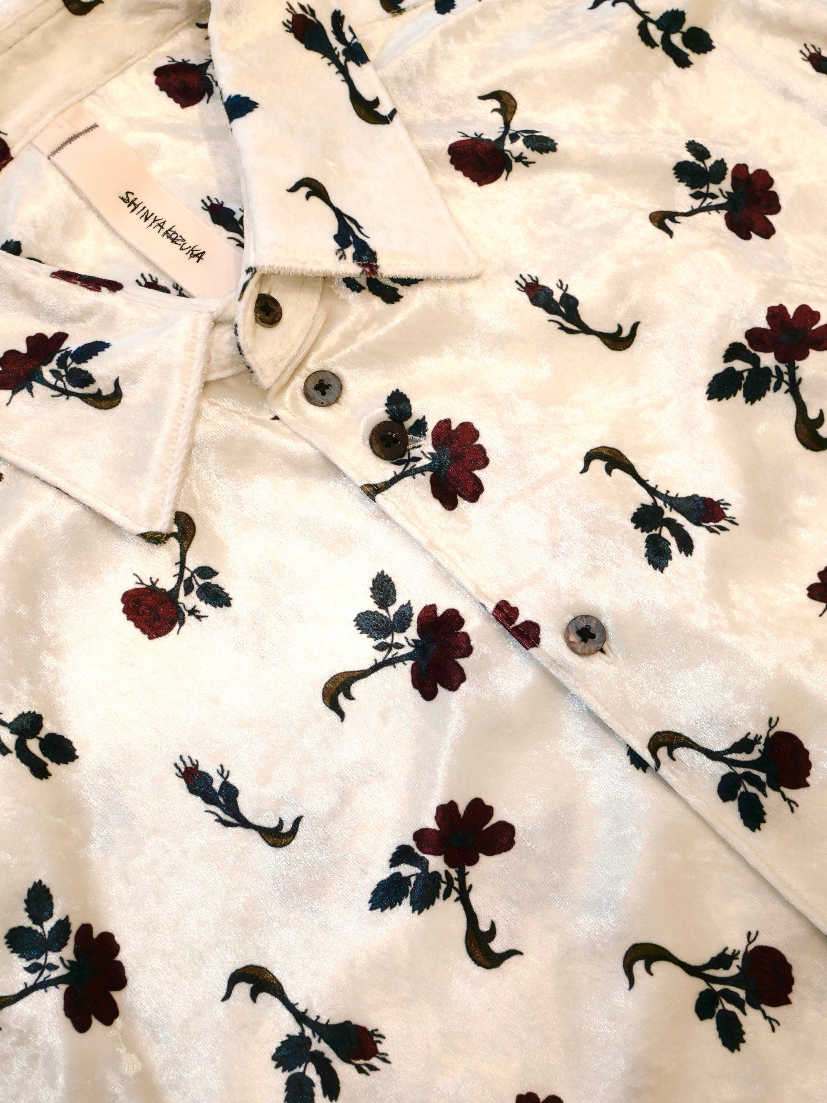 薔薇の柄が総柄に散りばめられたベルベットシャツ。