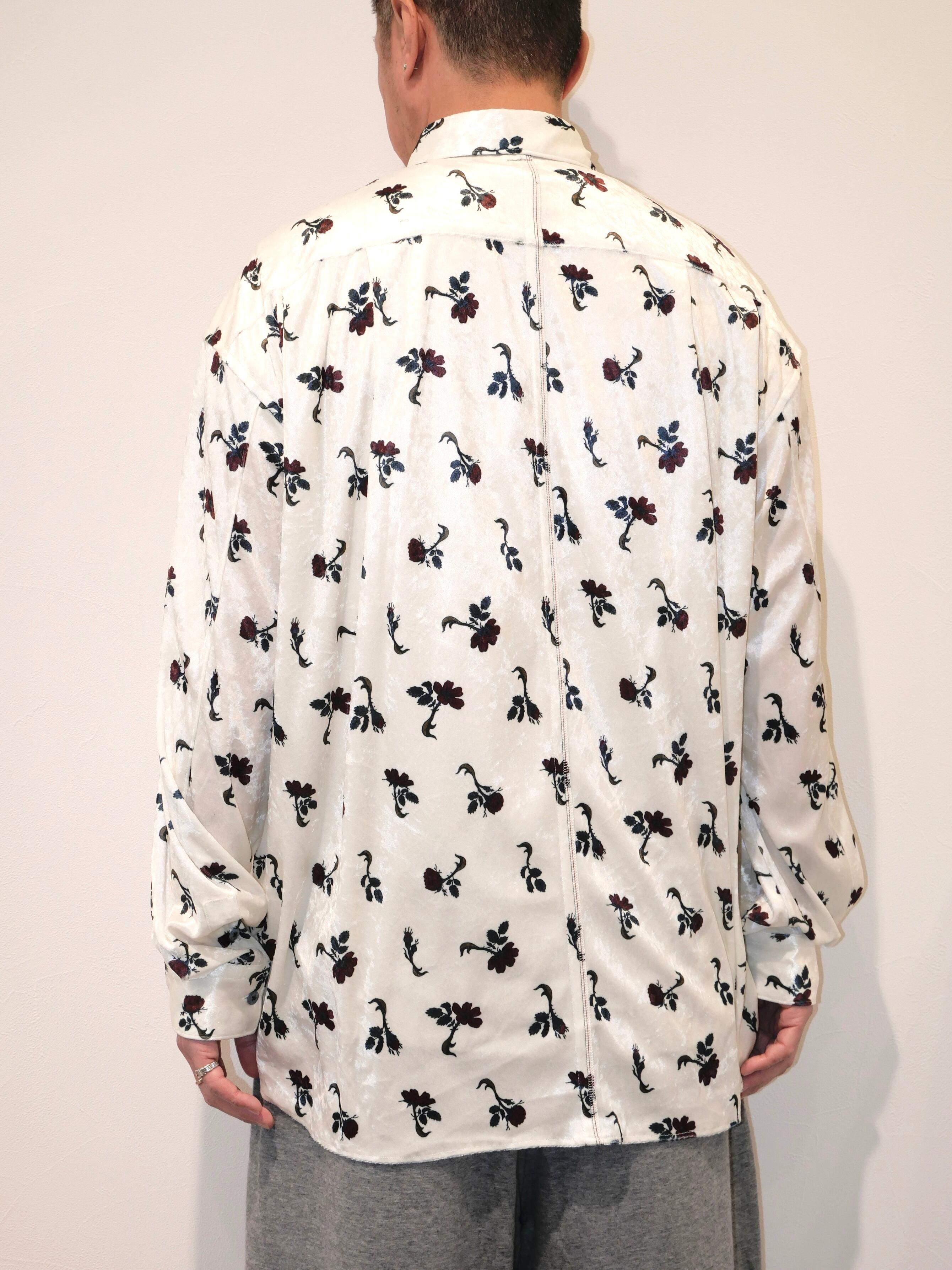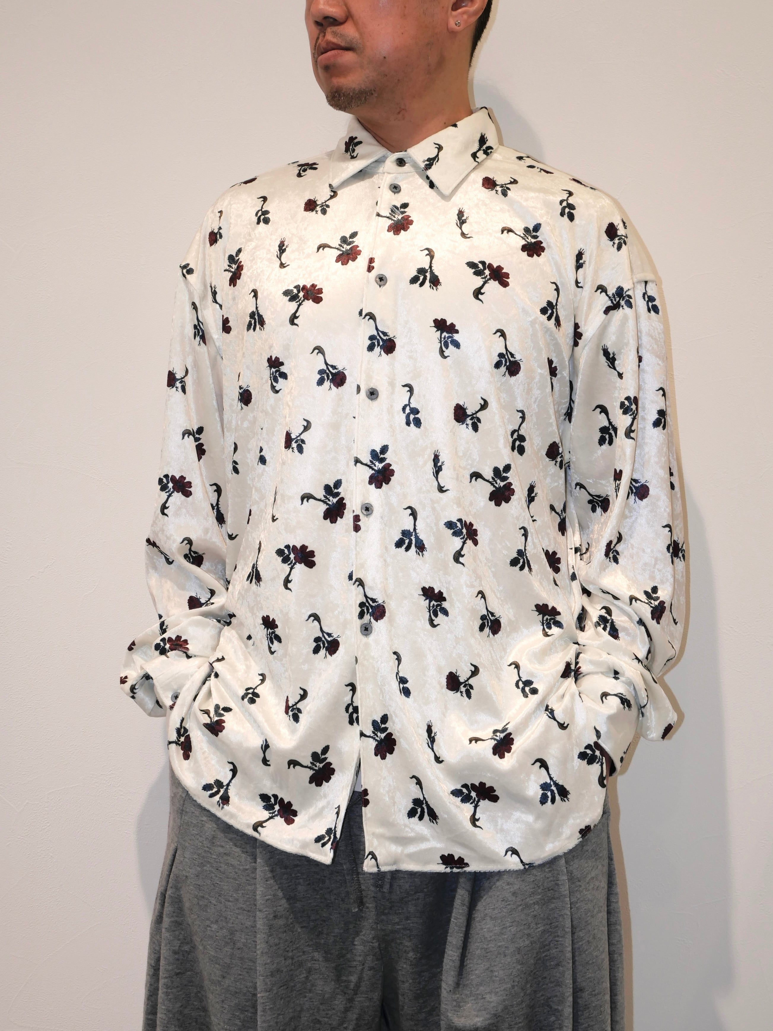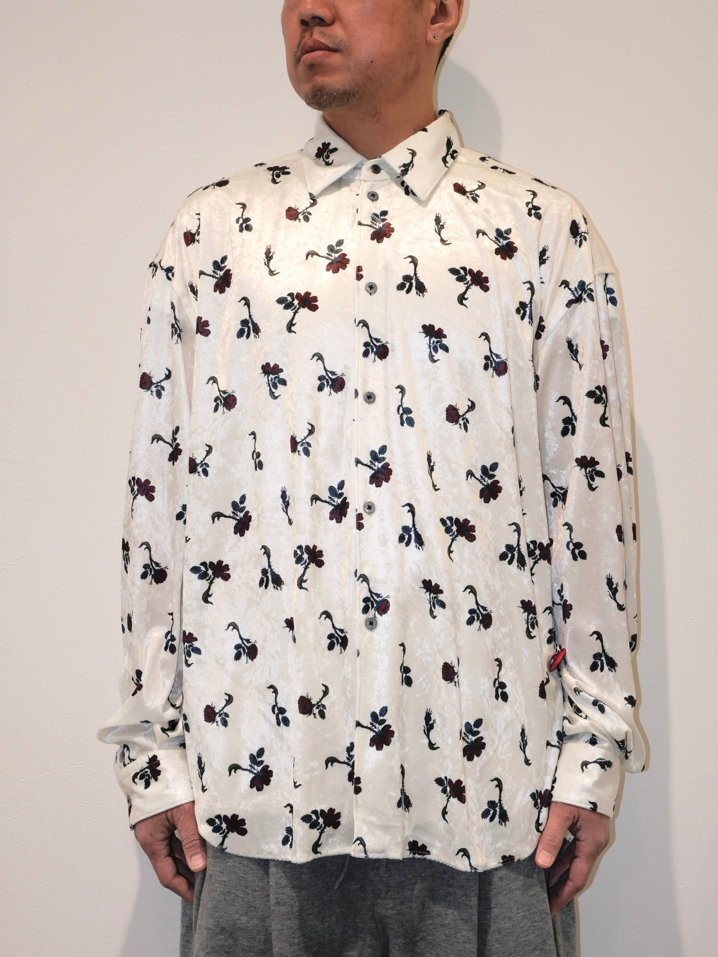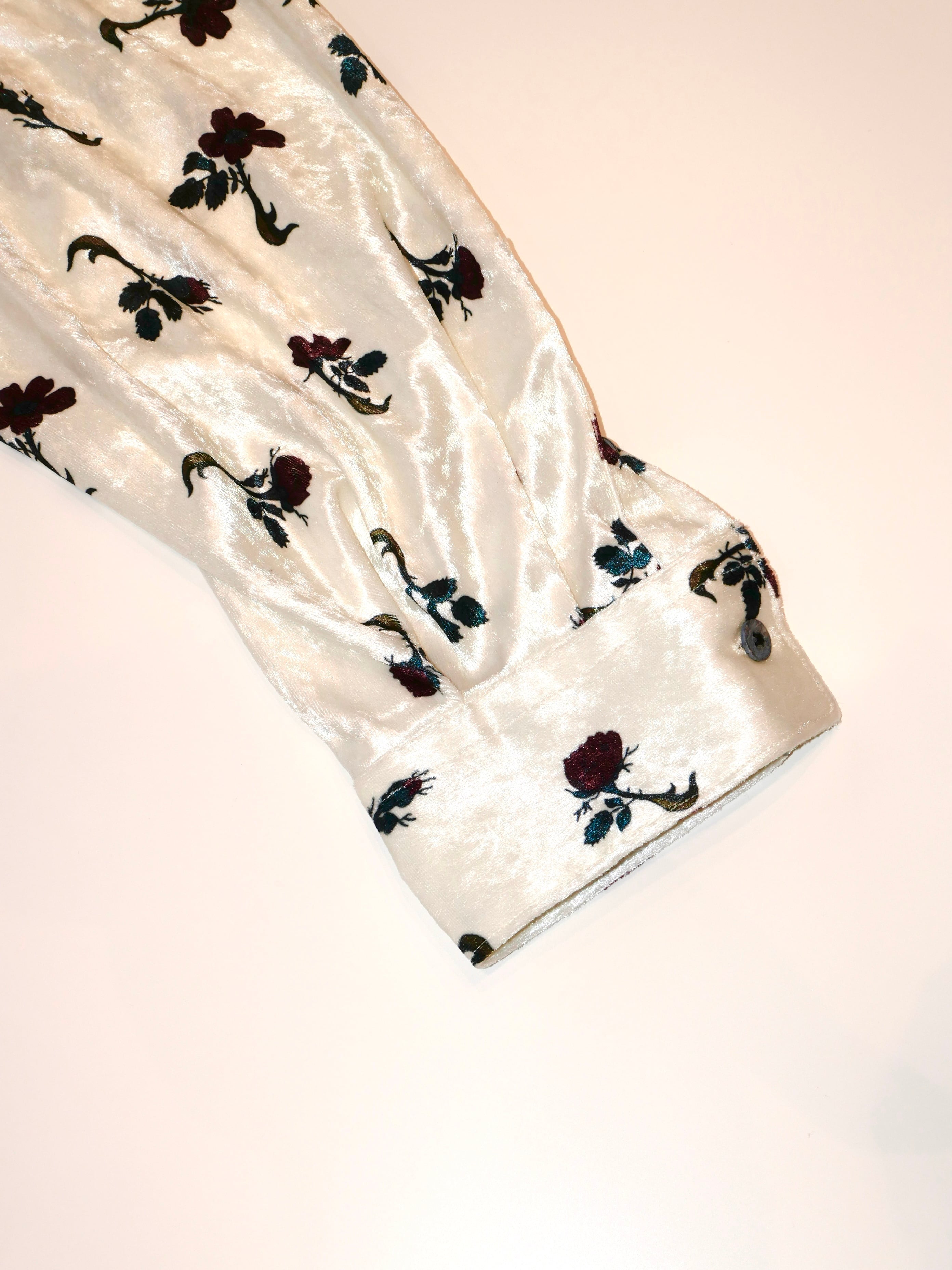薔薇の柄が総柄に散りばめられたベルベットシャツ。