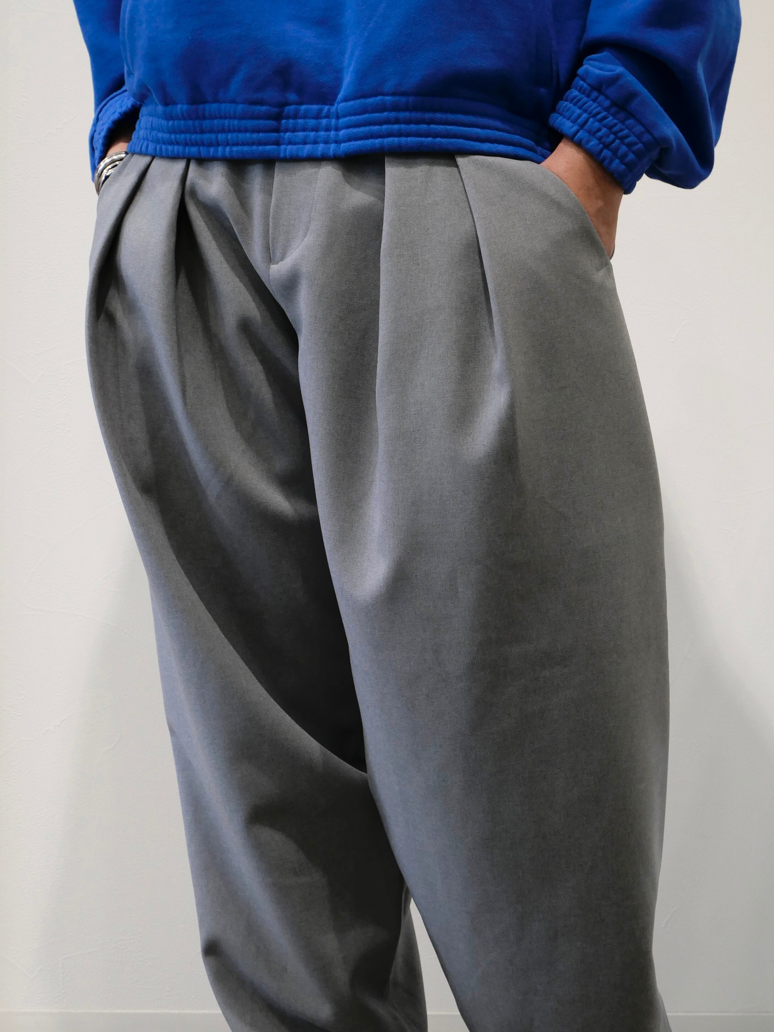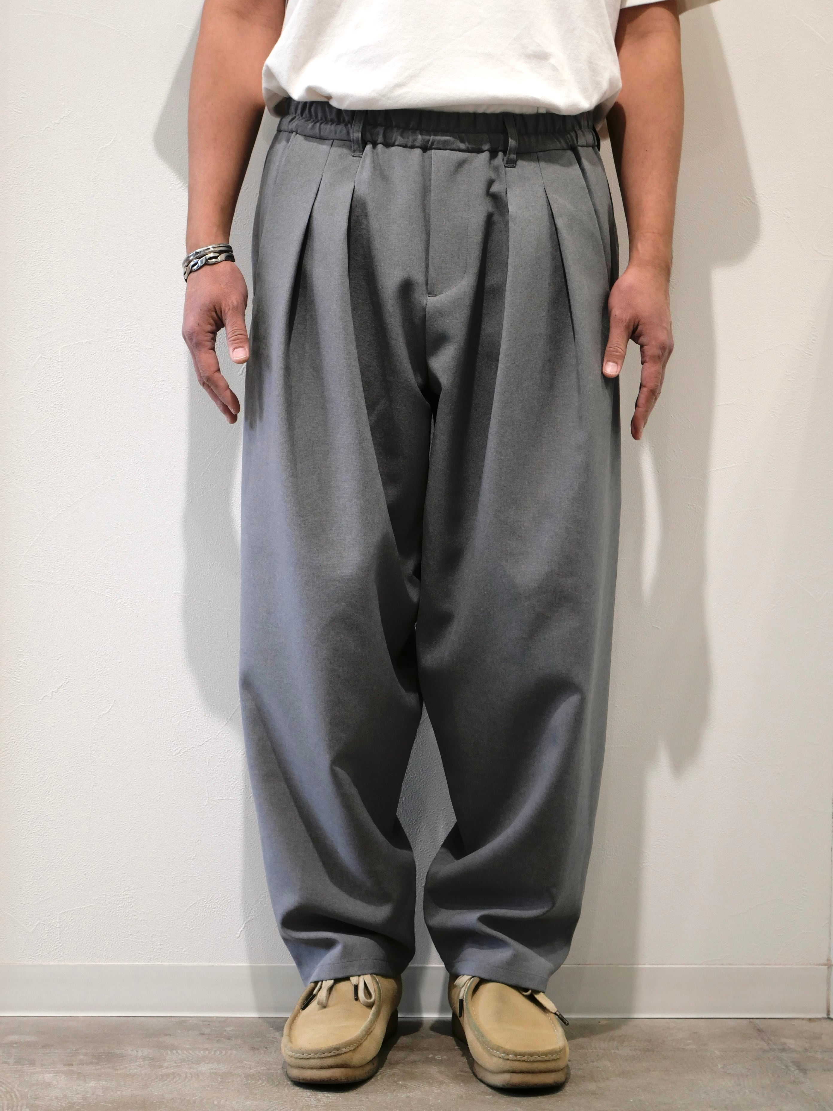F/CE.の定番シルエットとして人気の高い、トロピカルストレッチ素材を使用したバルーンテーパードパンツ。