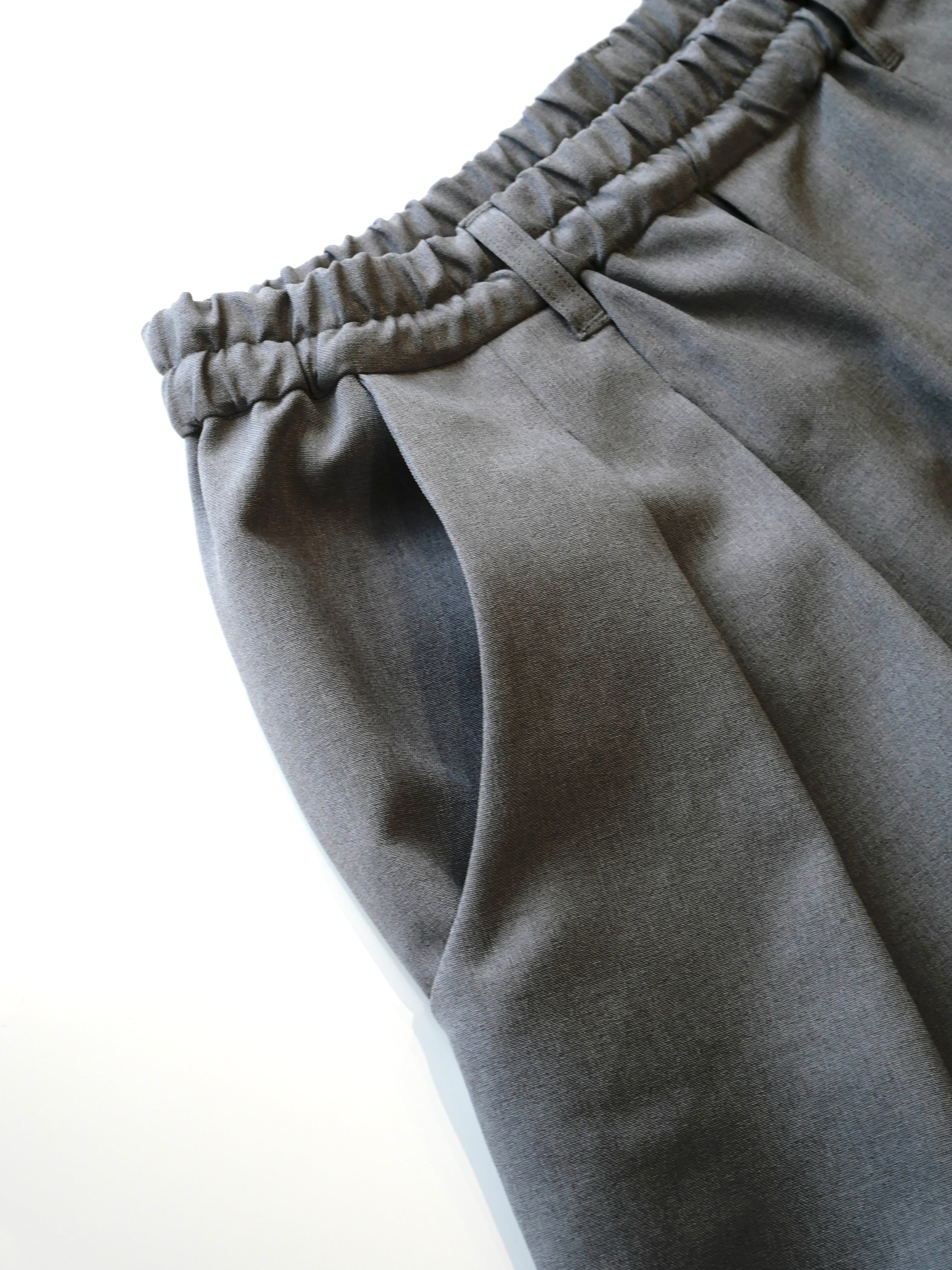 ウエストはゴム仕様にアップデートされ、イージーウェアとしての快適さが向上しました。脇ハギを無くしたことで生まれる落ち感が、美しいドレープを作り出します。