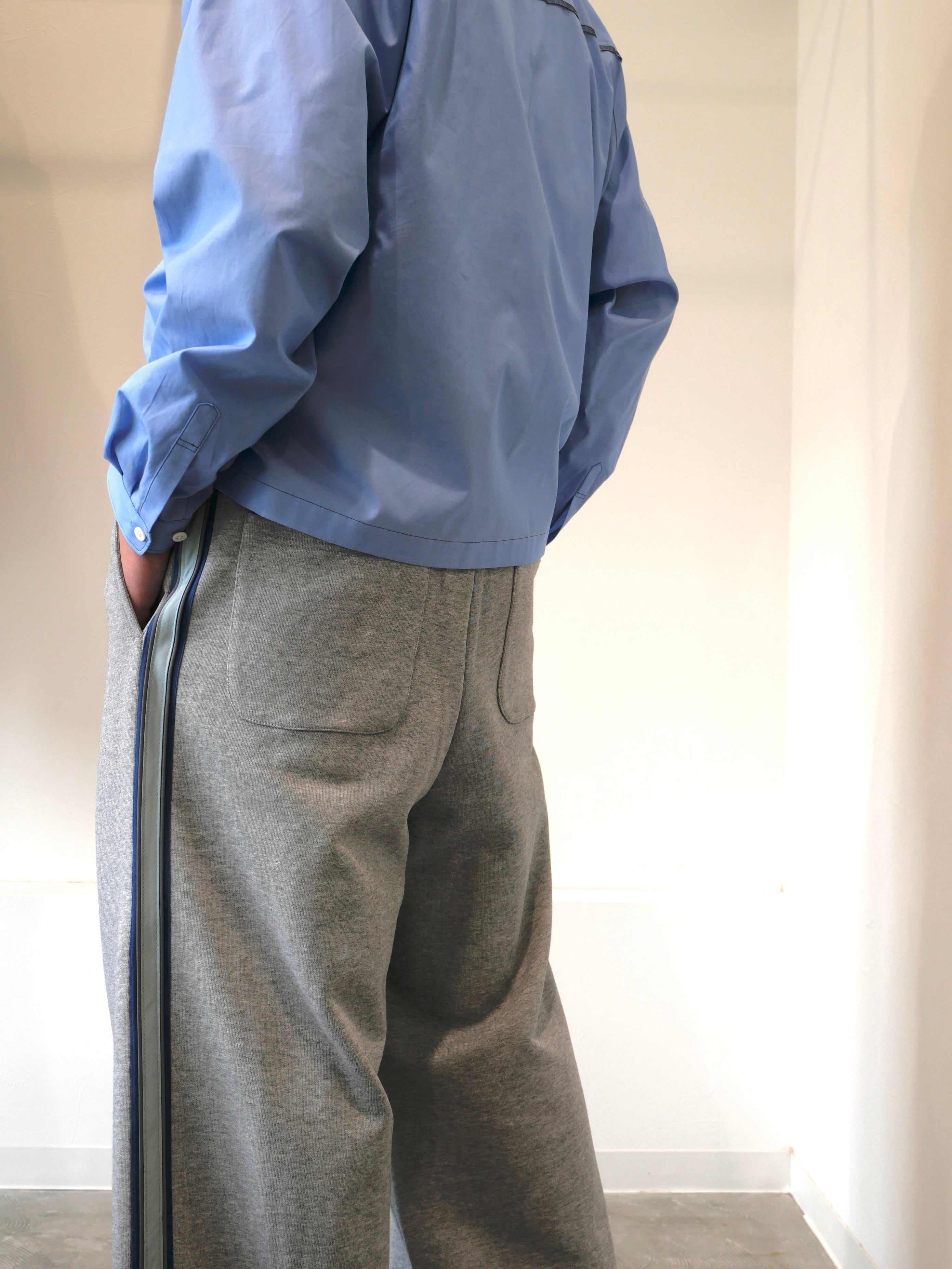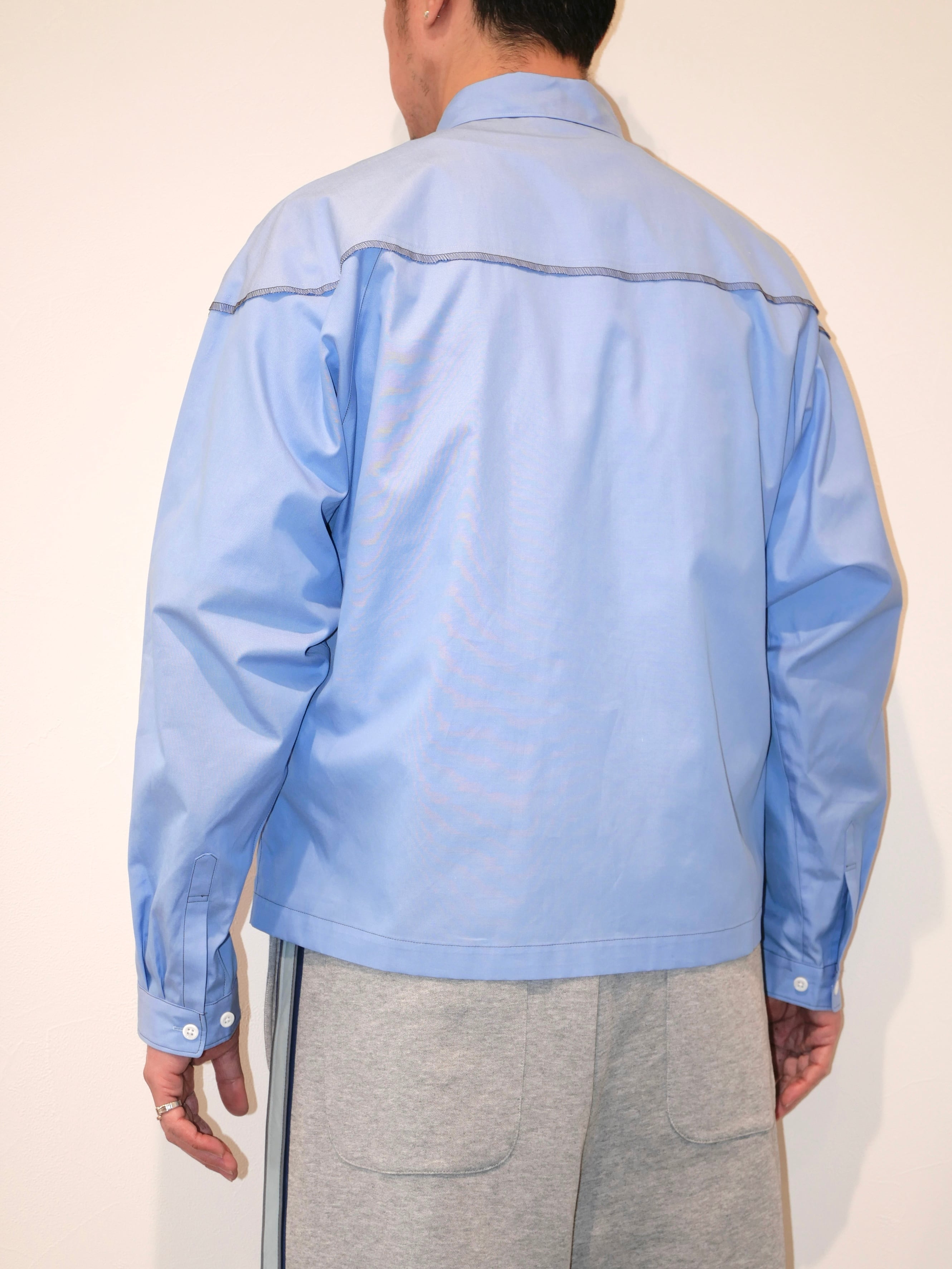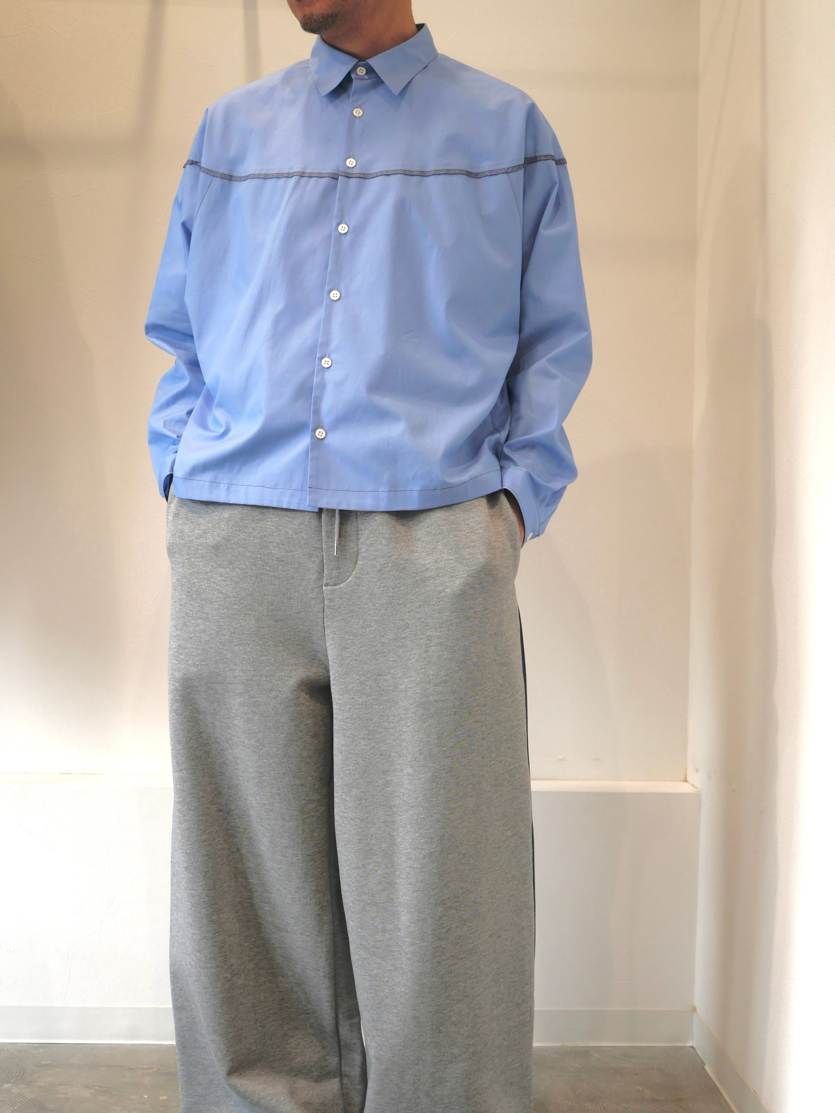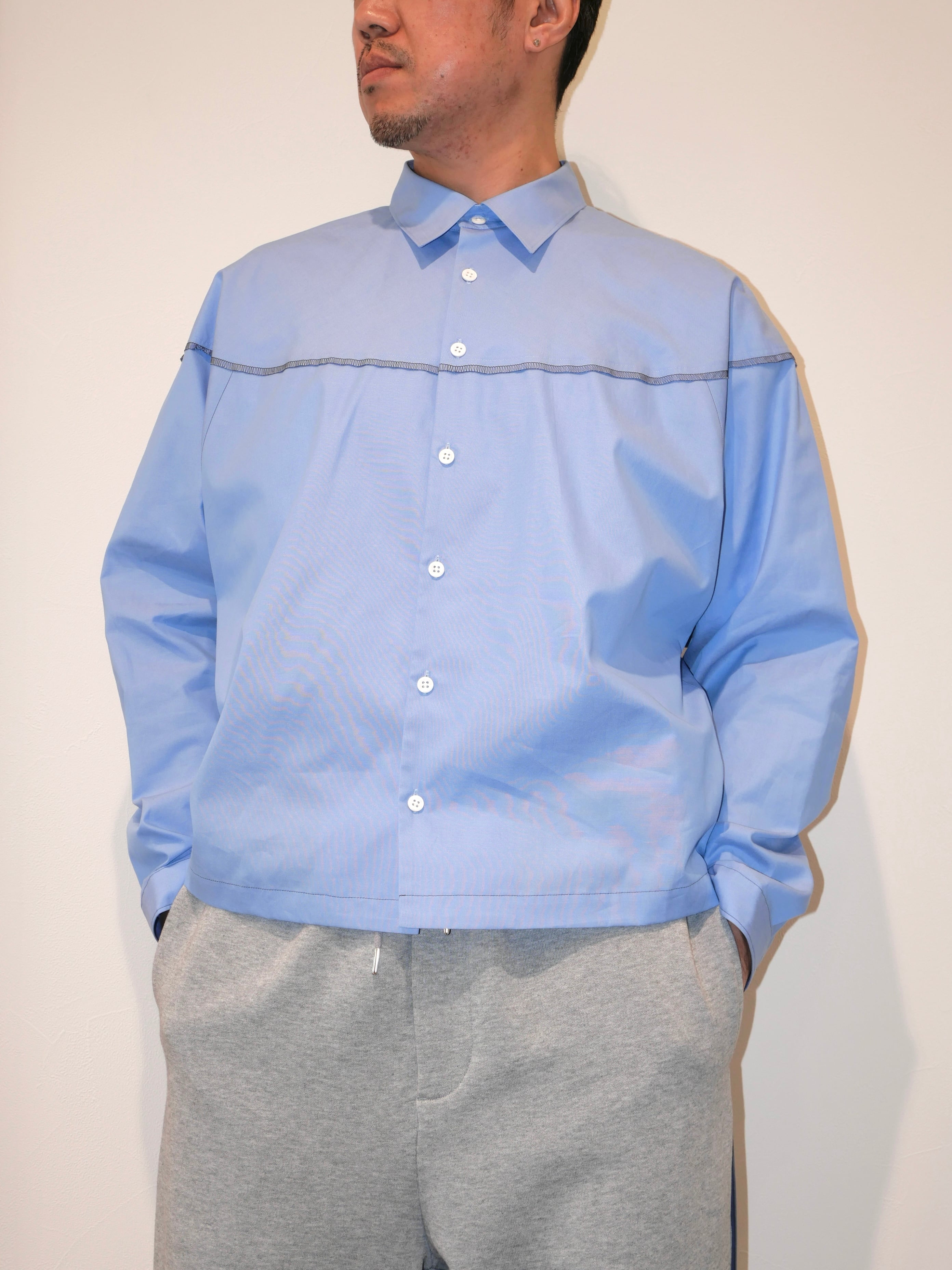 着丈の短めデザインとなっており、どんなボトムスでもバランスがとりやすいシルエットのシャツです。