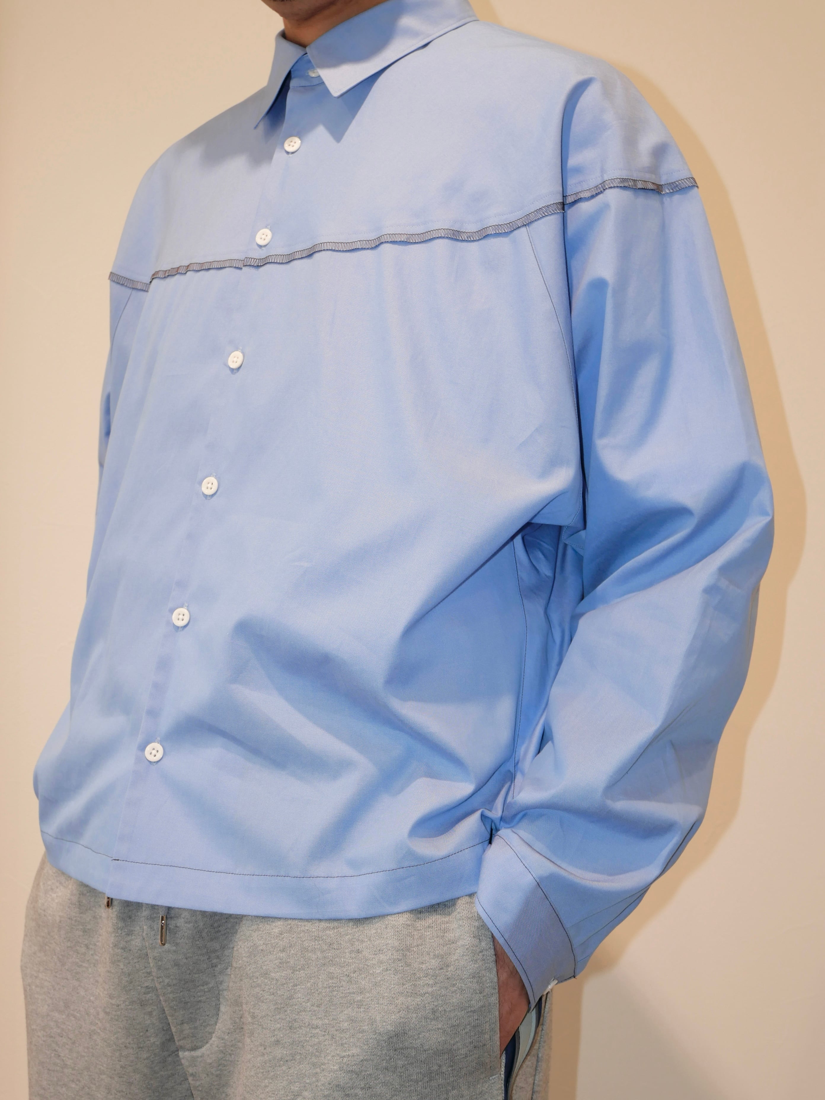 ドルマンスリーブ風カップショルダーシャツ。