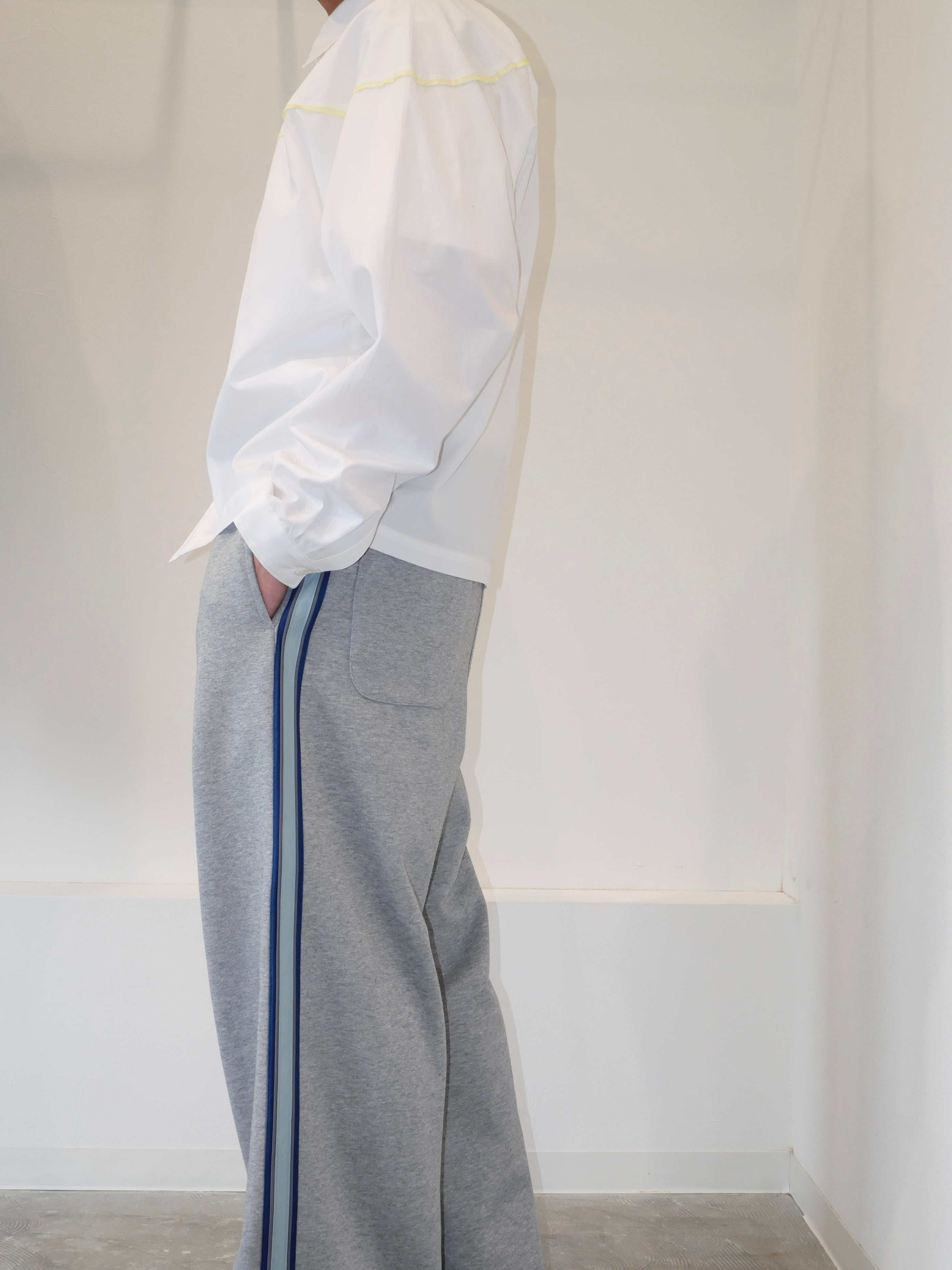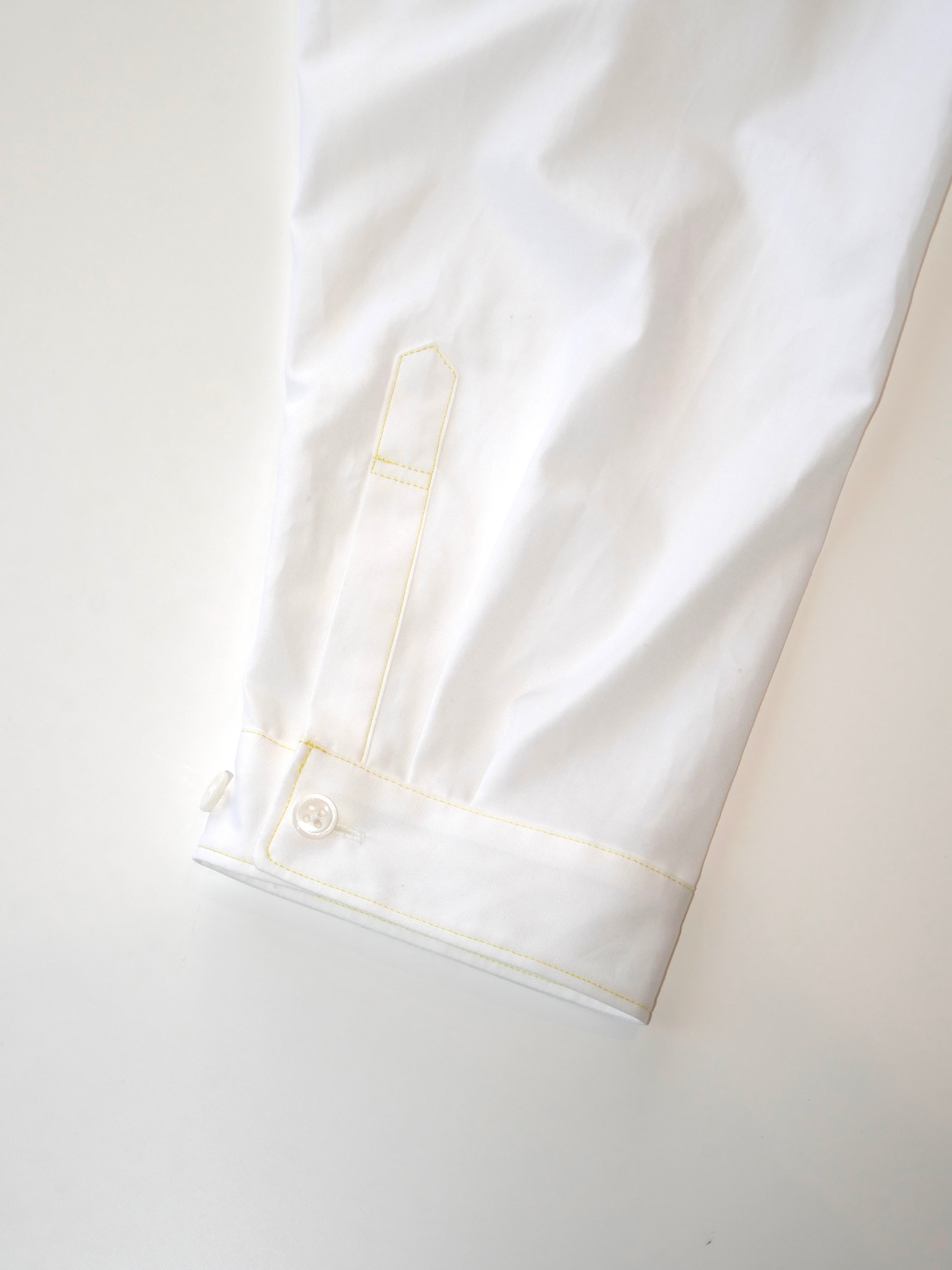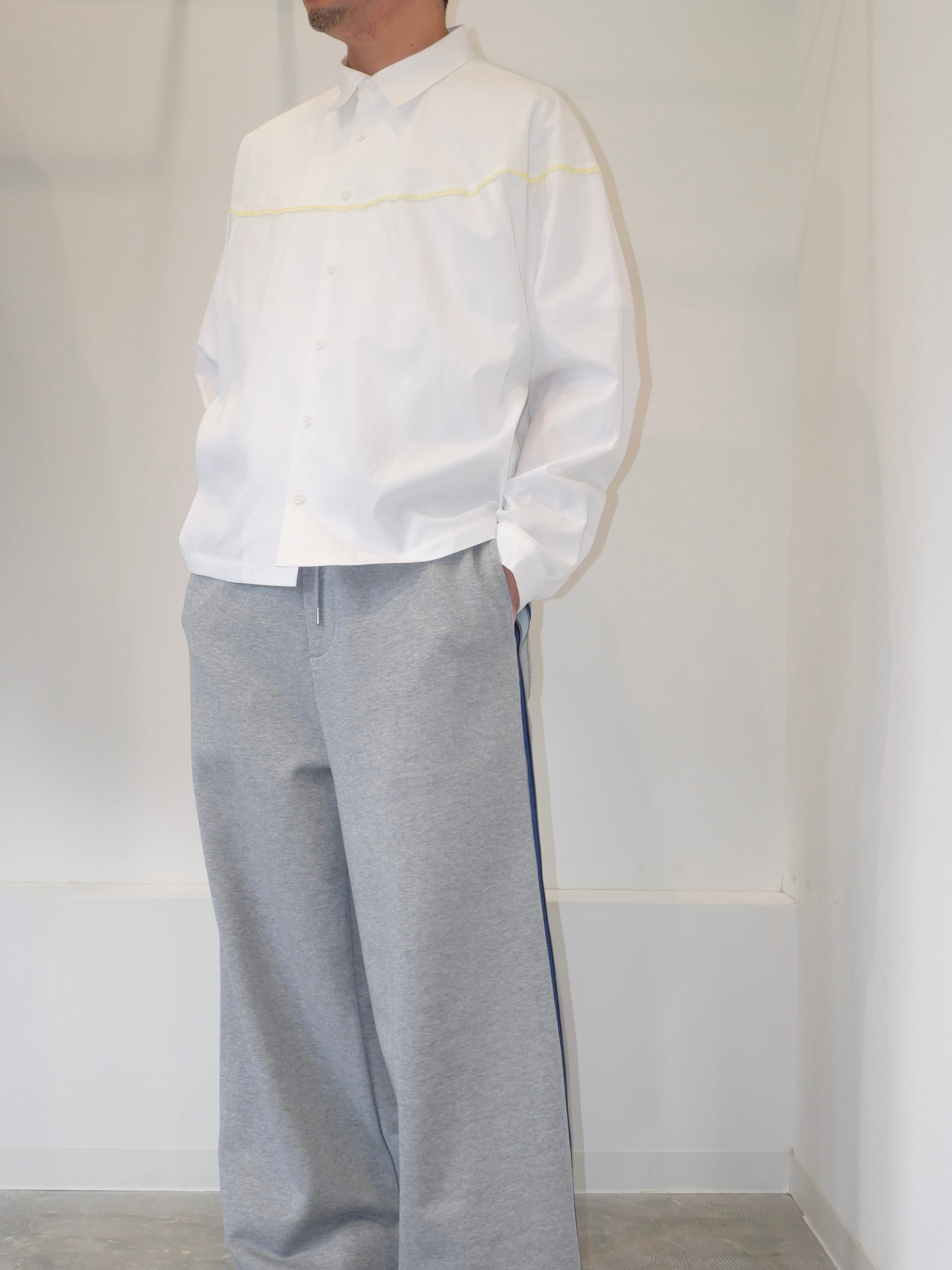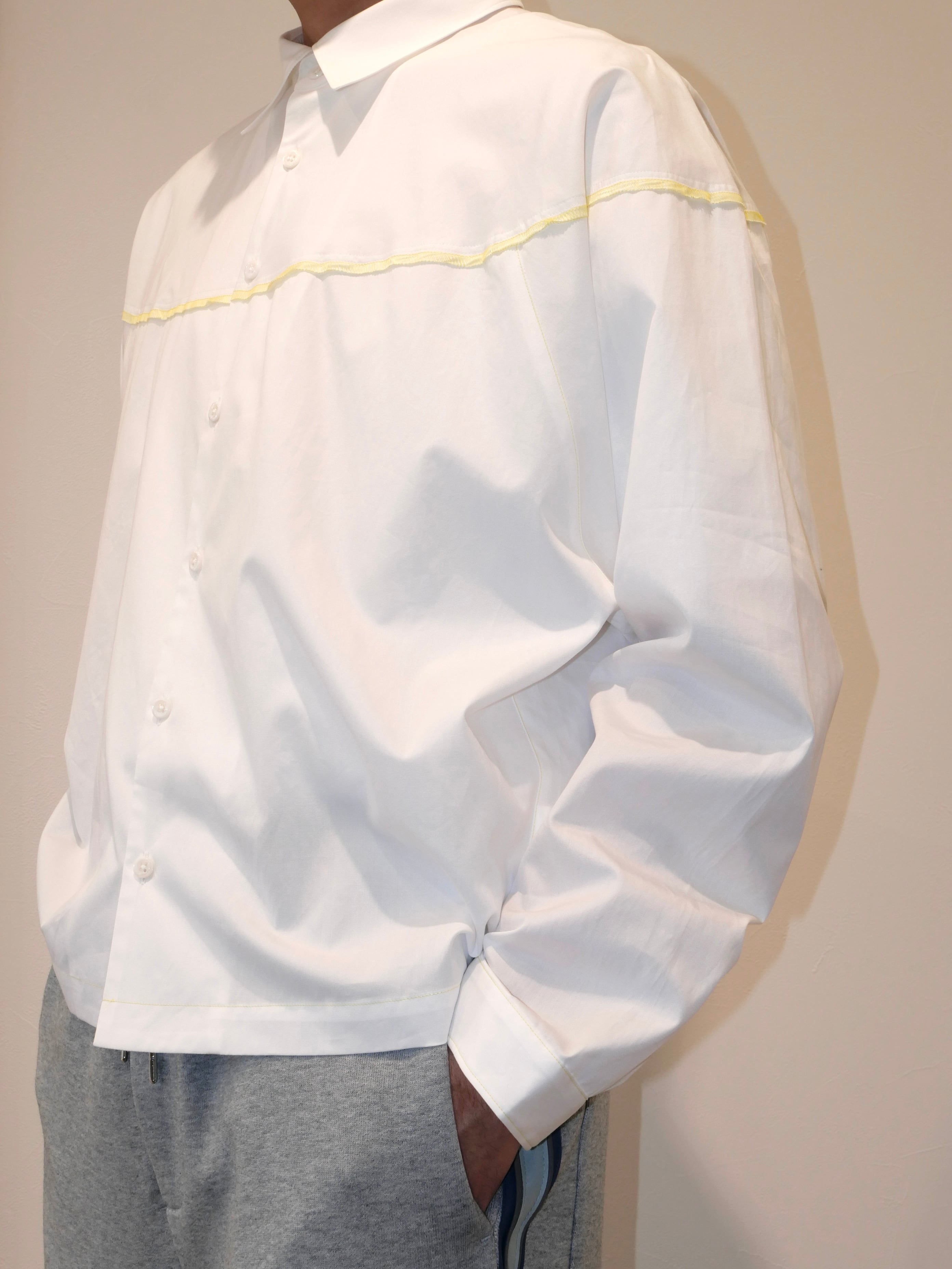 着丈の短めデザインとなっており、どんなボトムスでもバランスがとりやすいシルエットのシャツです。