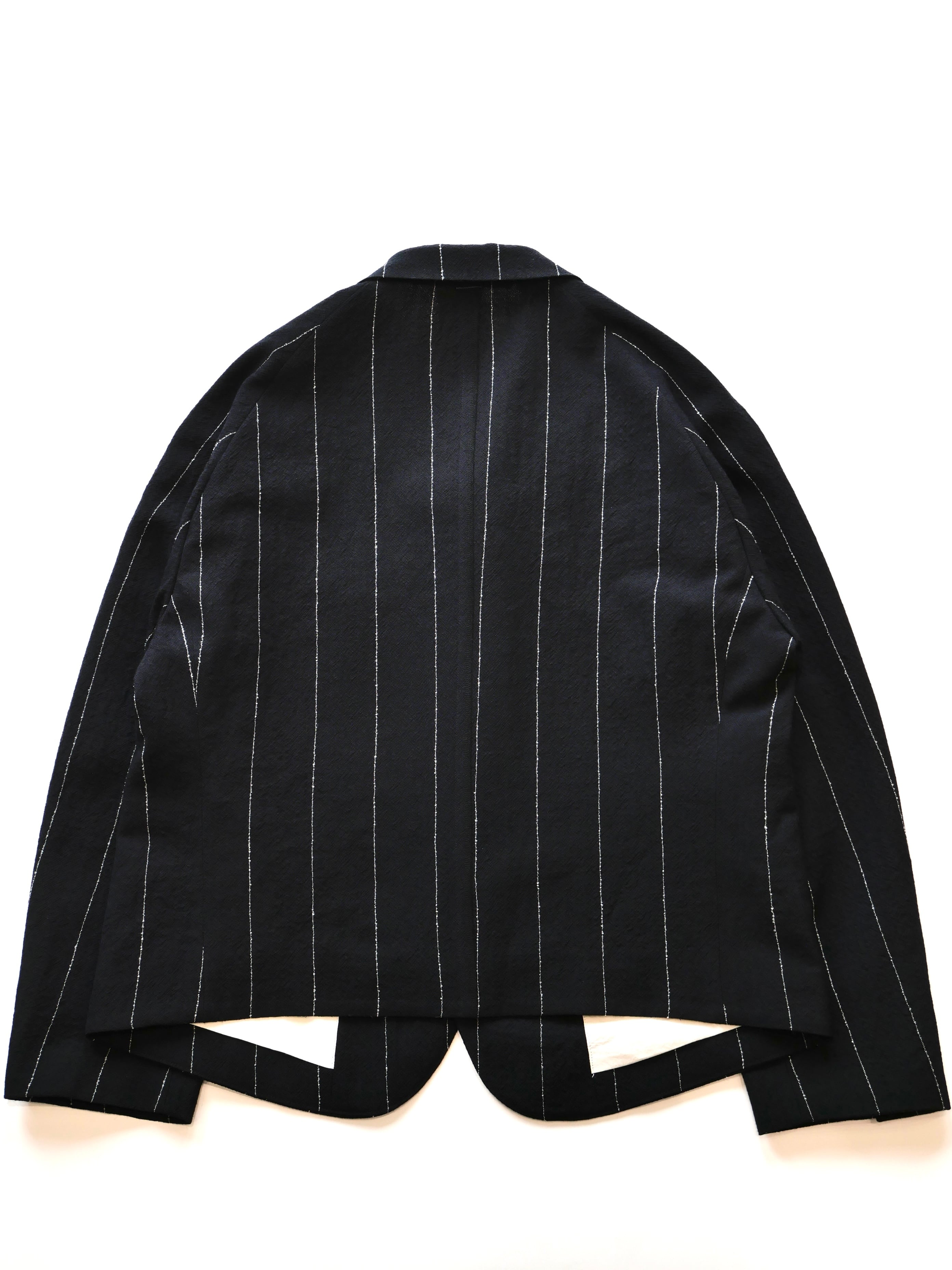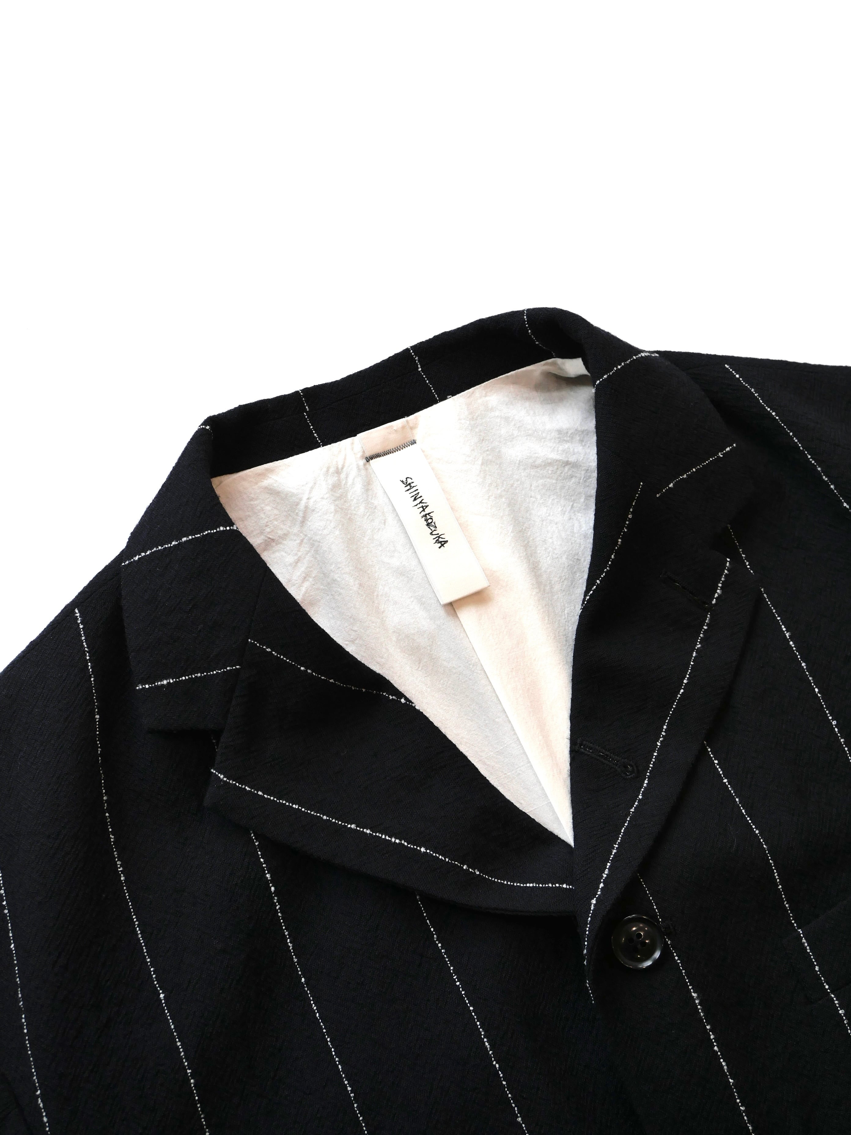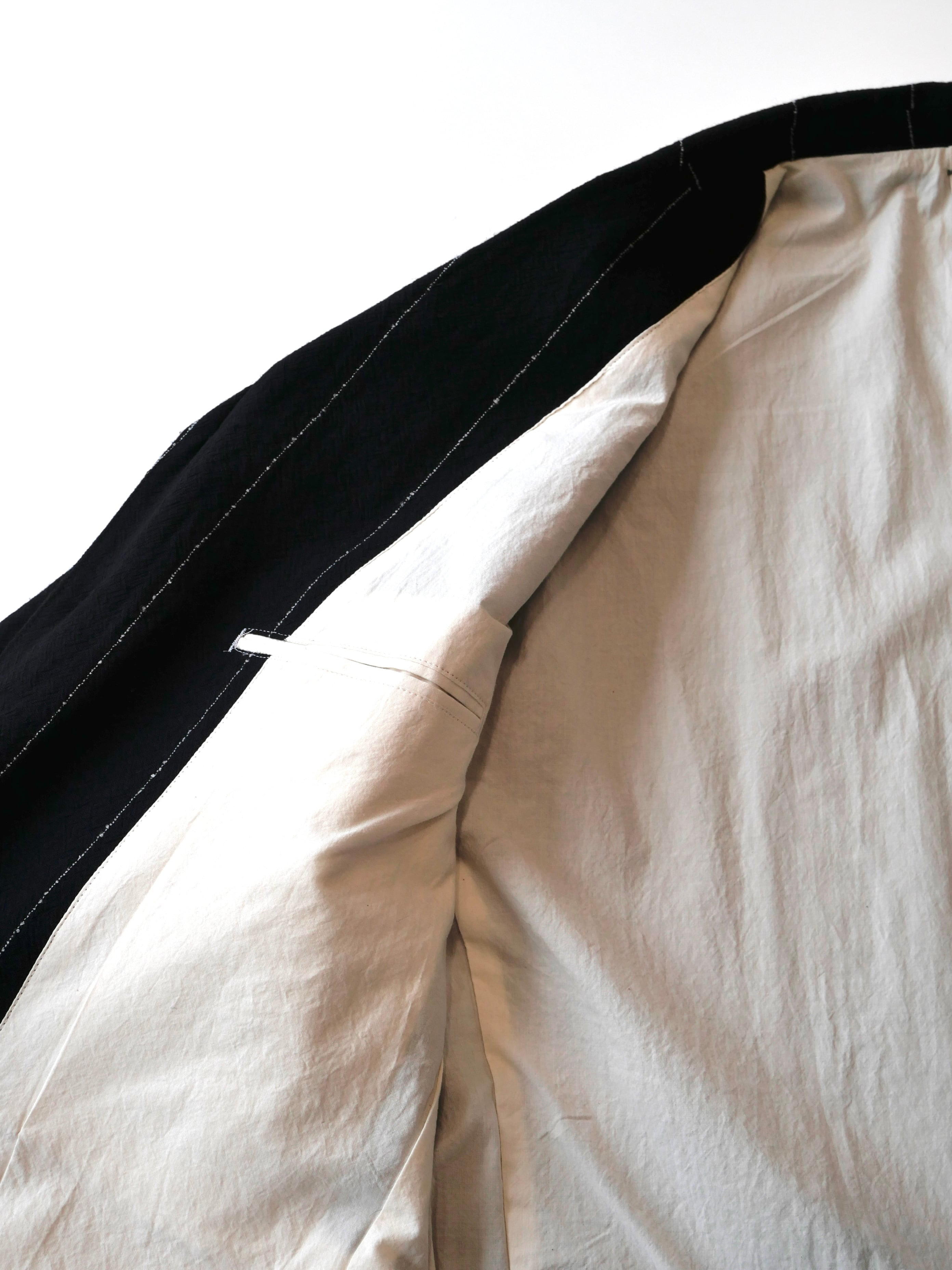 塩縮ウール独特のシボ感とシャリ感のある素材を用いたテーラードジャケット。