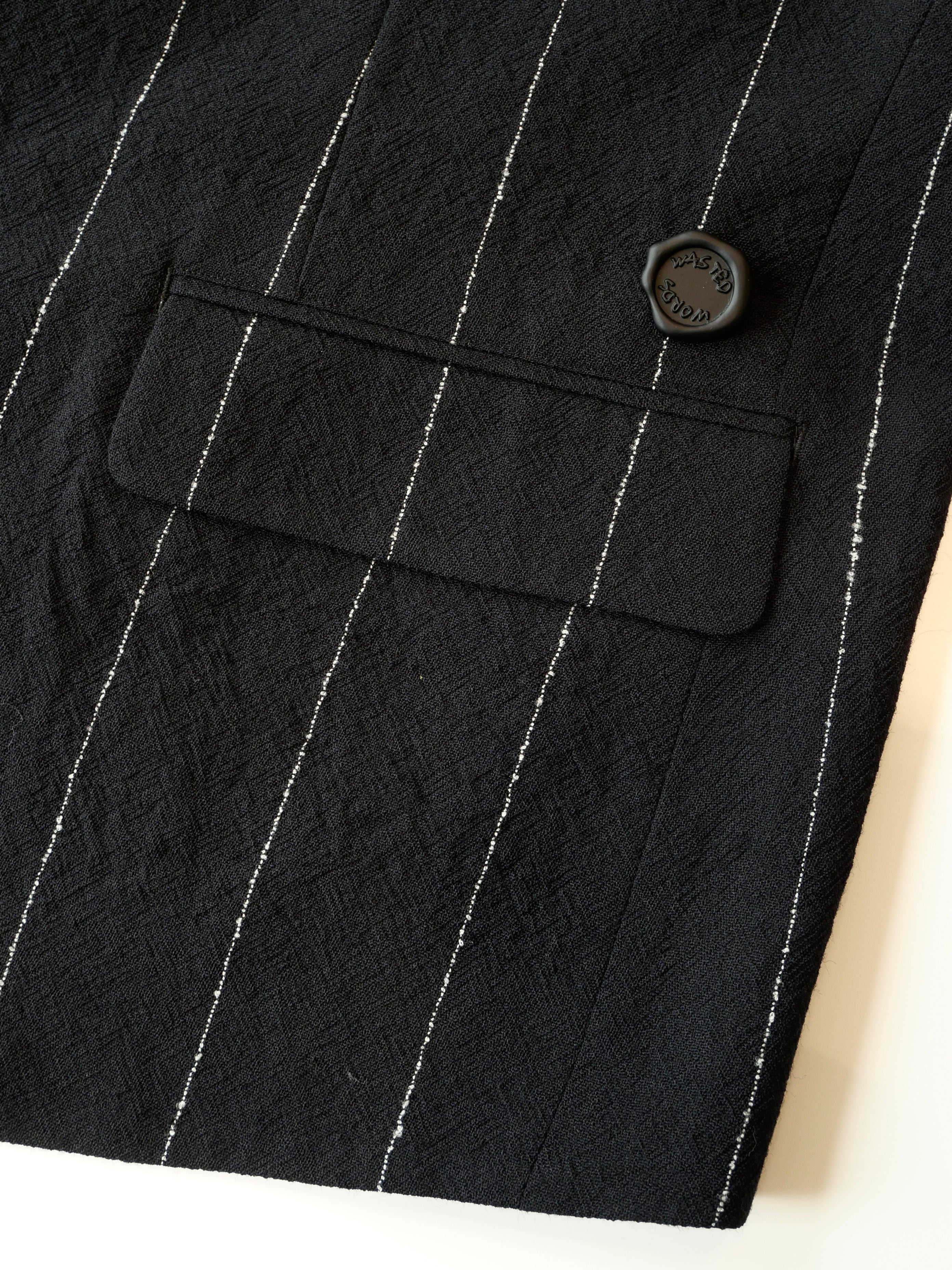 当時のサックコートのように上部のみボタンを閉じると綺麗なハの字にシルエットが広がります。