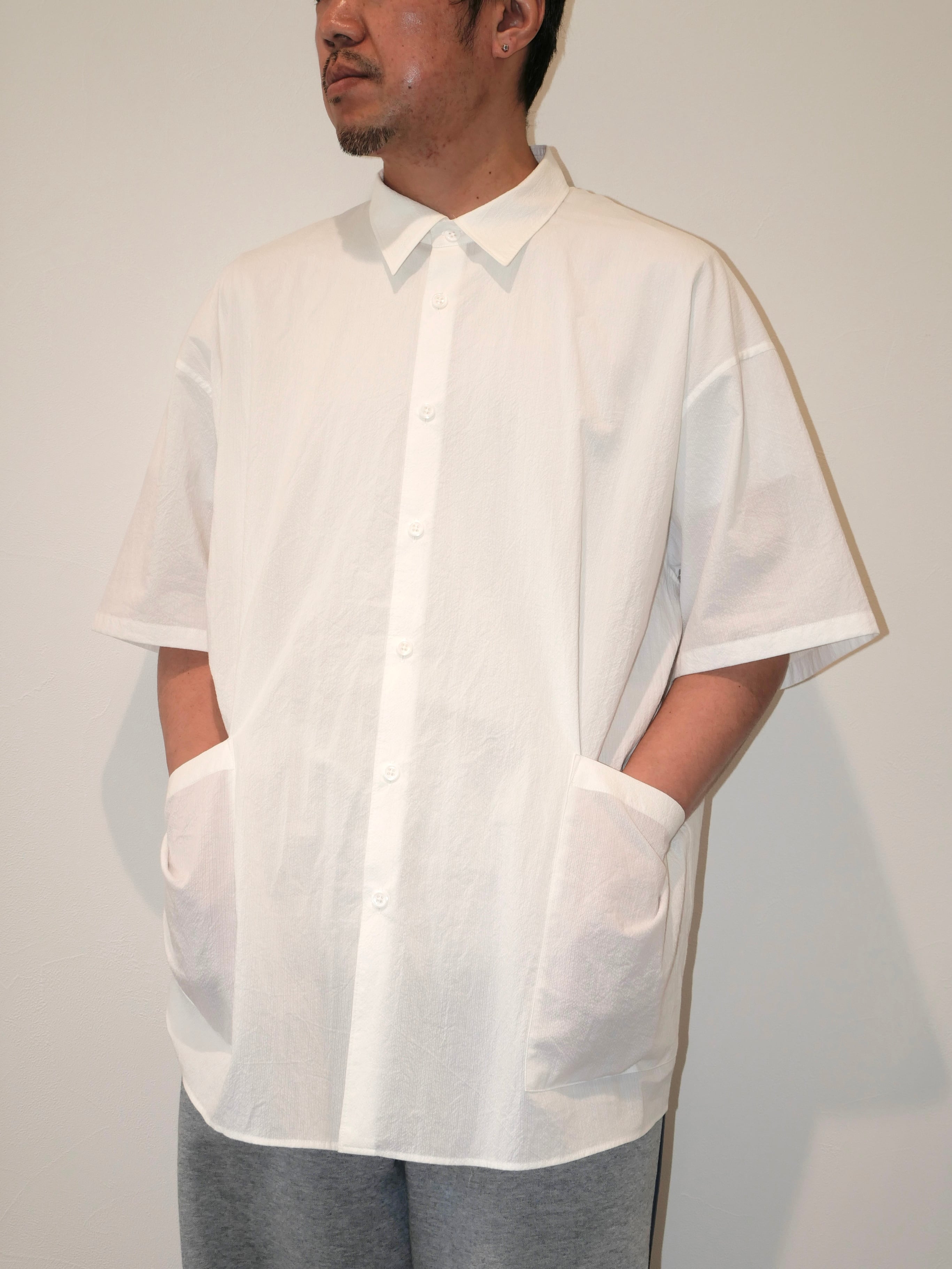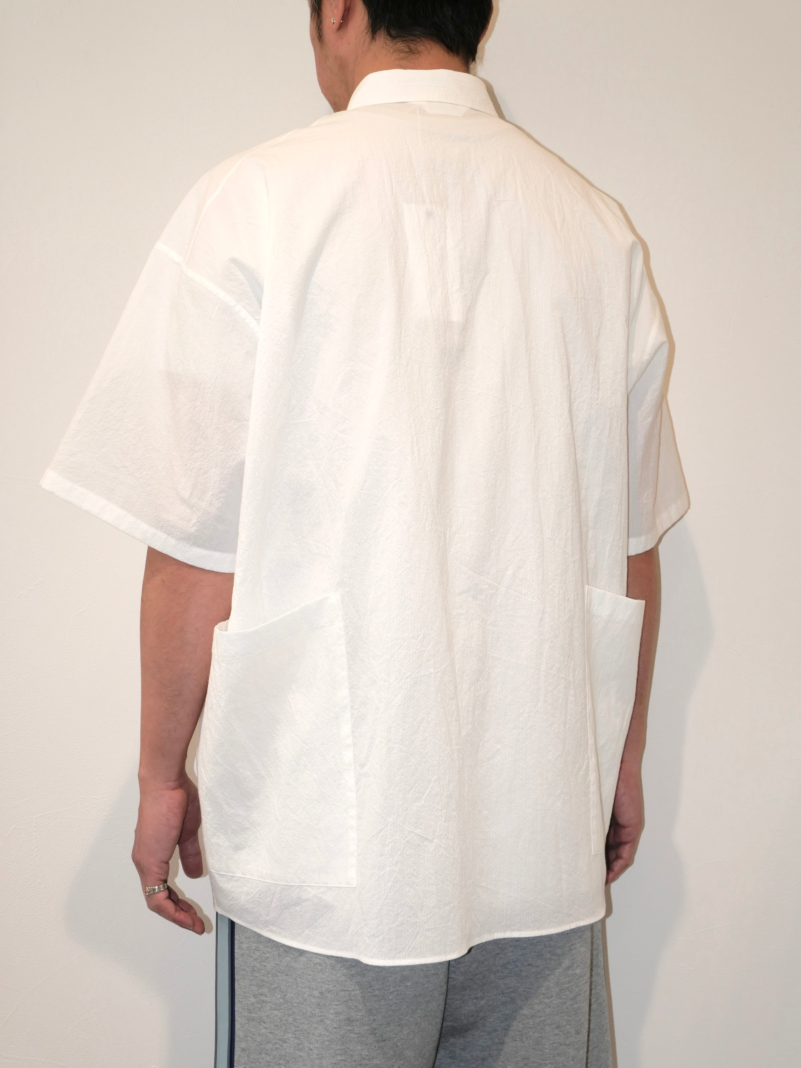 前後のビックポケットが着こなしのアクセントとなり夏場にスタイリングの主役になれる半袖シャツです。