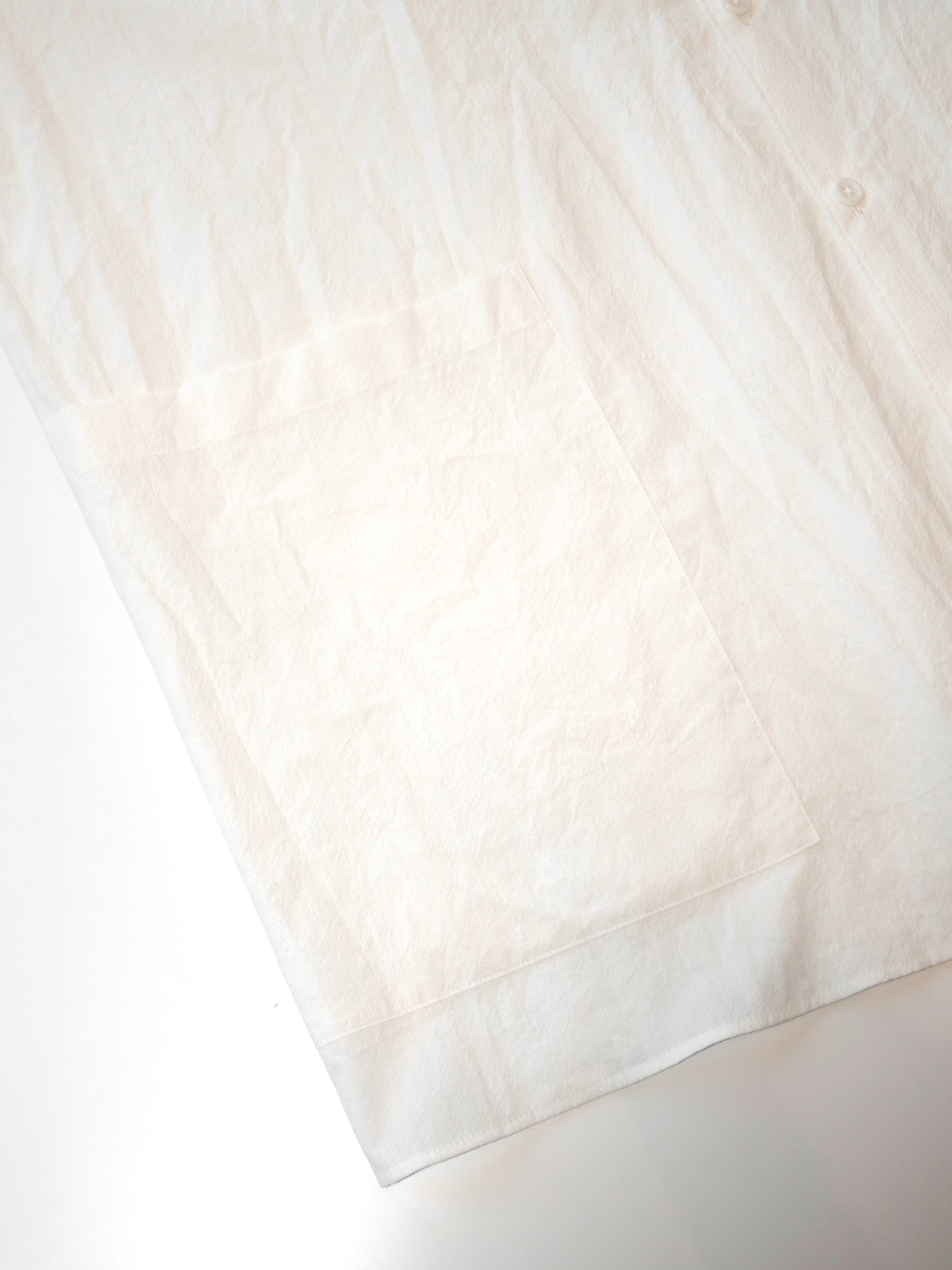 前開きボタン7つ、レギュラーカラー仕様。