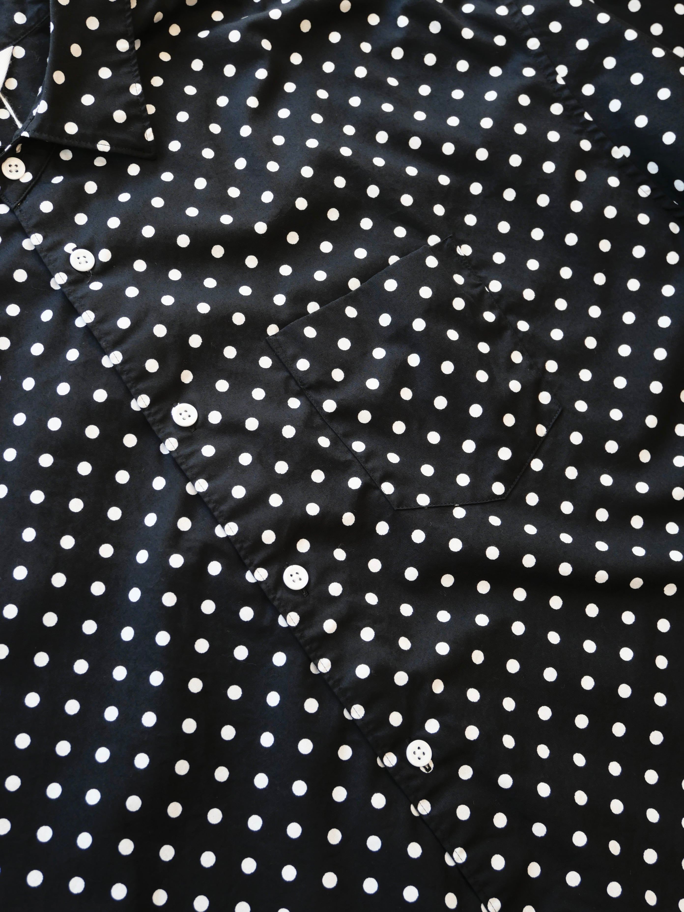 柔らかいコットン生地が特徴のドット柄半袖シャツ。