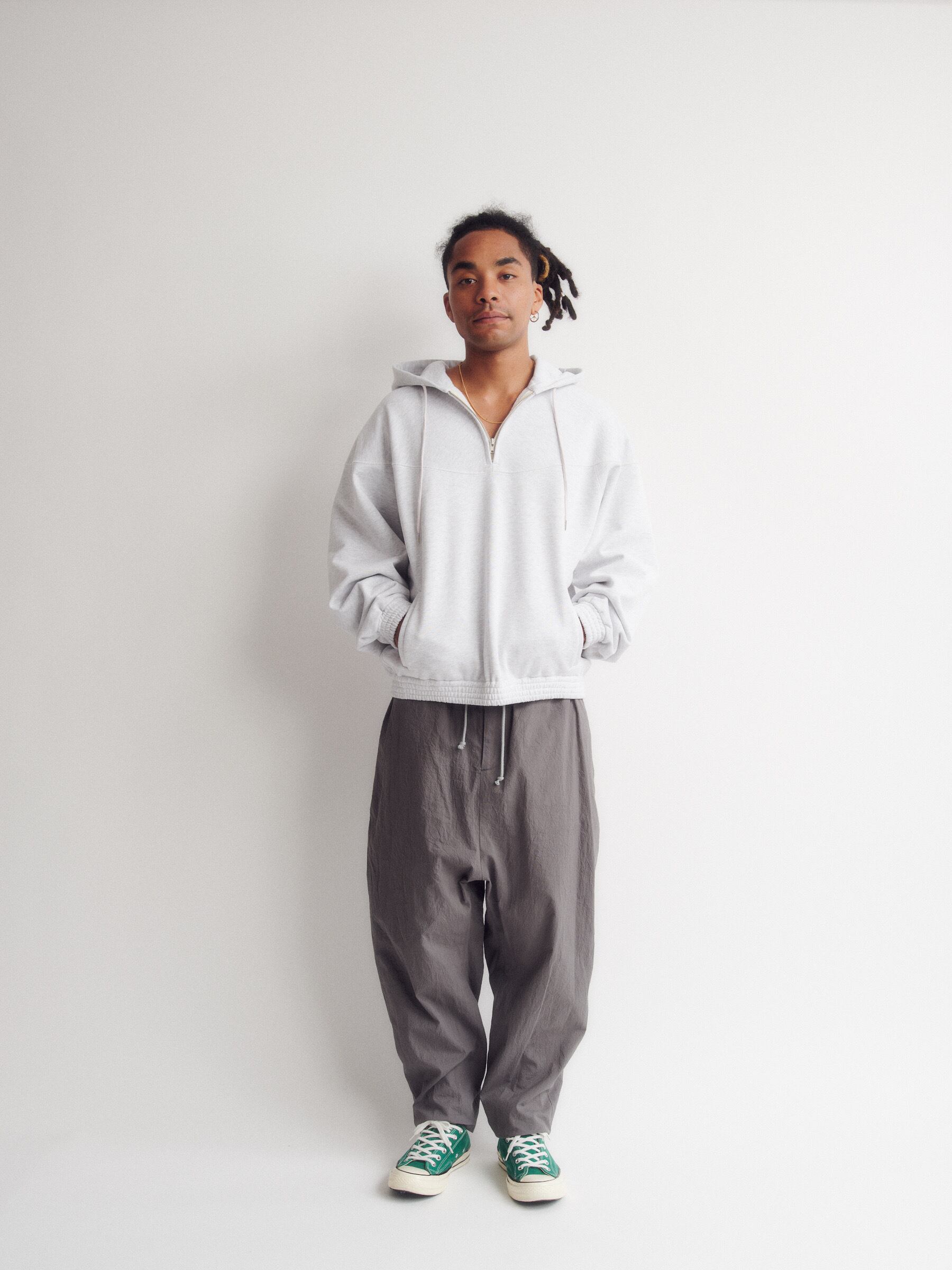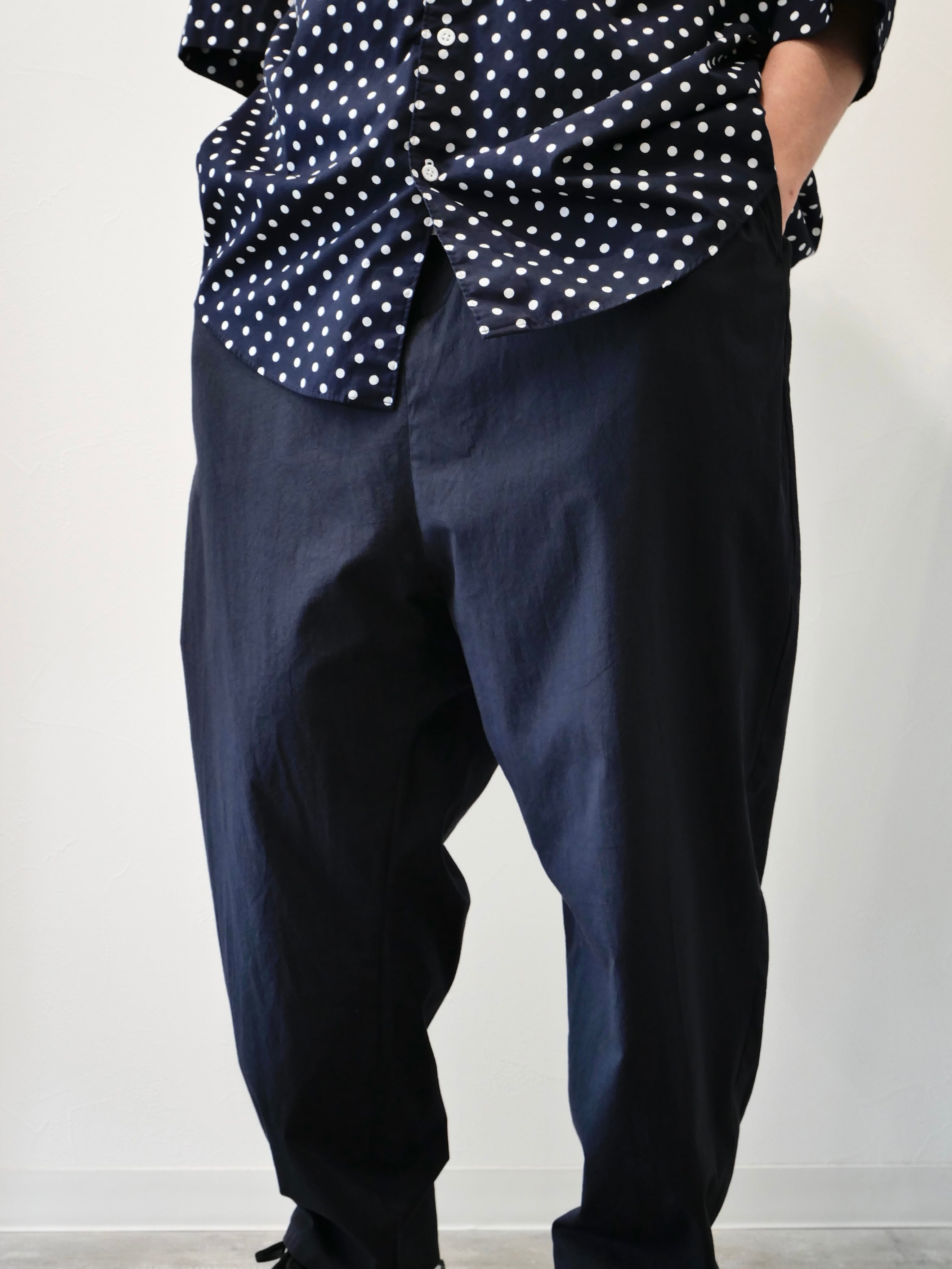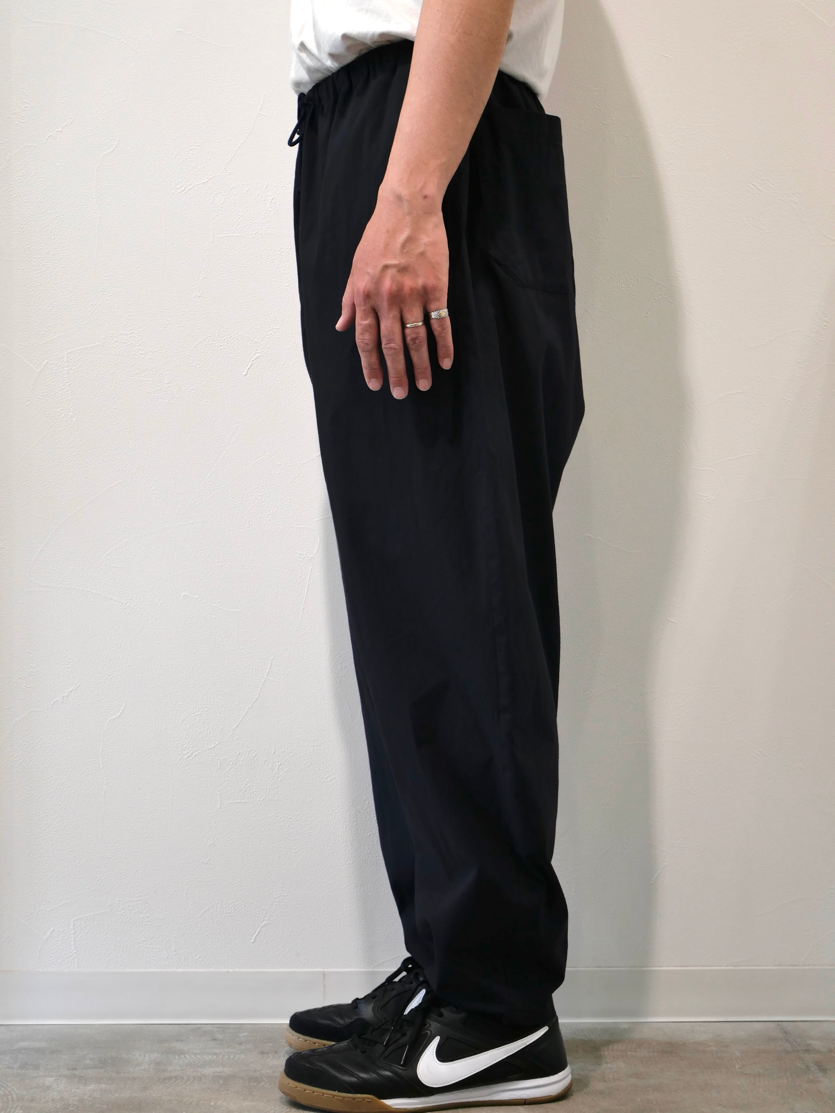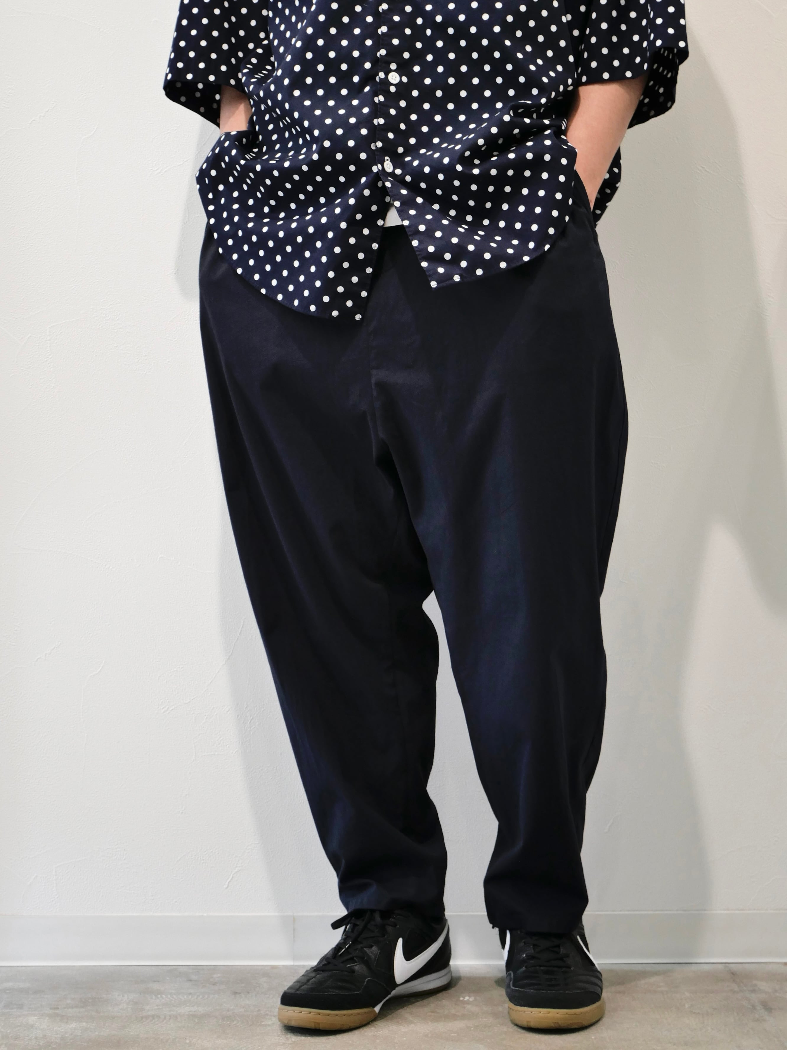 落ち感の良いサルエルパンツ。