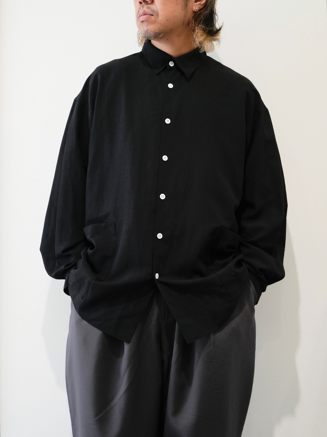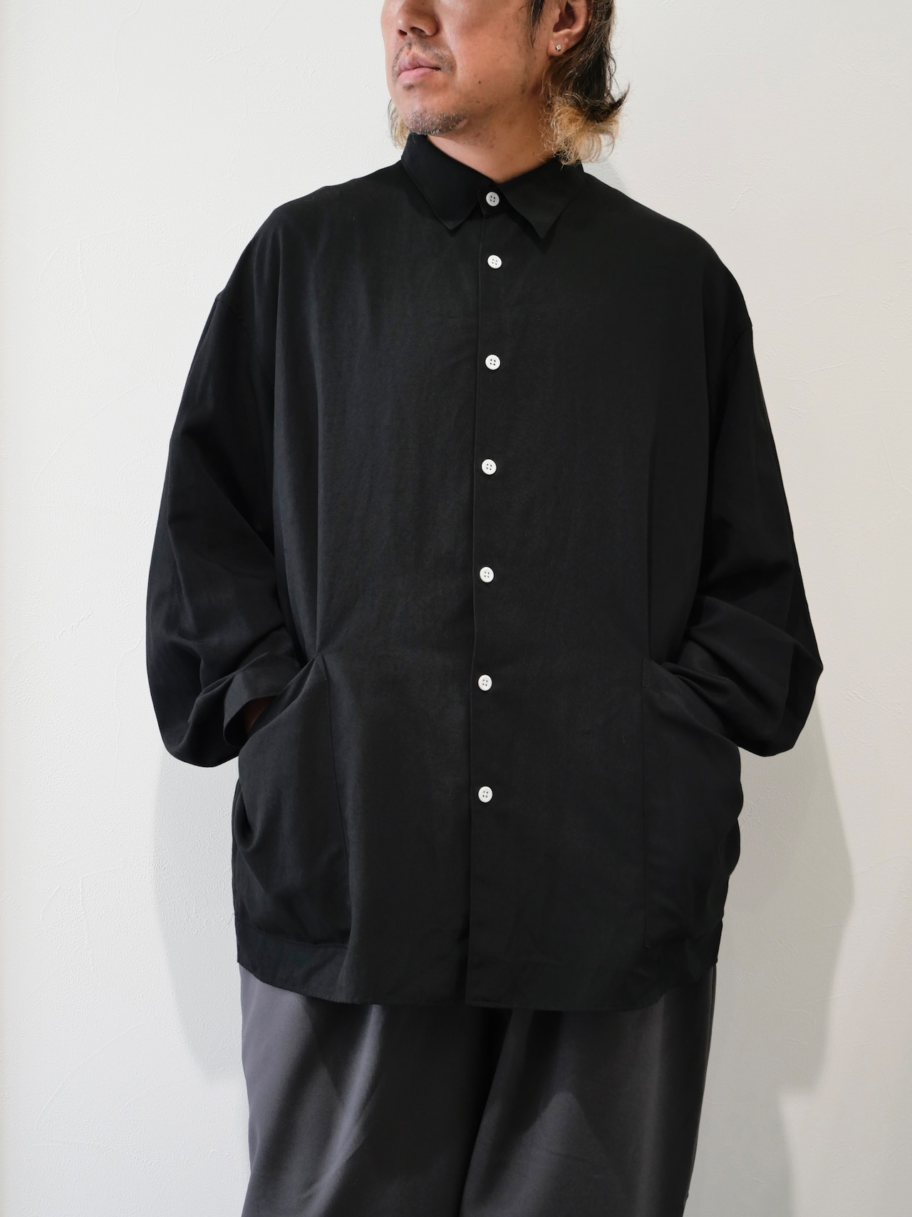 身幅・丈ともにオーバーサイズな長袖シャツです。