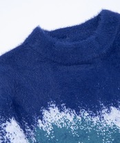 ナイロン・ポリエステル糸を使用したニットは、今季のテーマであるスカンジナビア地域の霧がかった森をジャガードで表現。